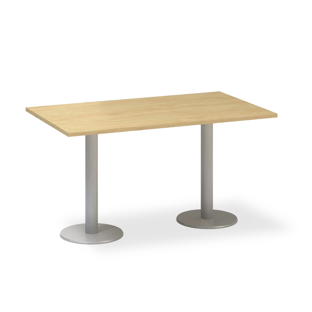 Vrchní deska je vyrobena z laminované dřevotřísky o síle 25 mm. Je postavena na stabilní kovové podnoži, která má kulatý tvar a dodá tak stolu elegantní design.