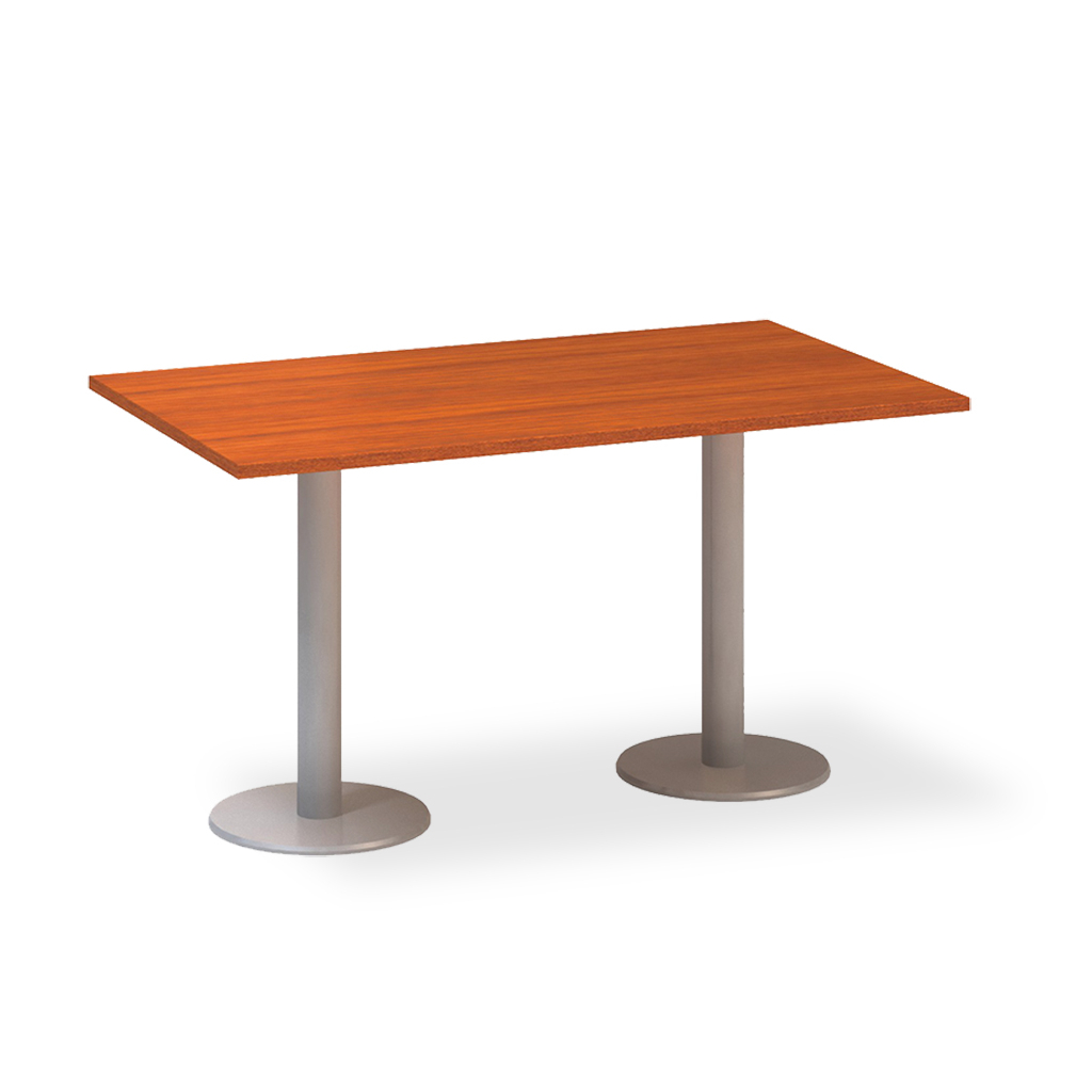 Vrchní deska je vyrobena z laminované dřevotřísky o síle 25 mm. Je postavena na stabilní kovové podnoži, která má kulatý tvar a dodá tak stolu elegantní design.