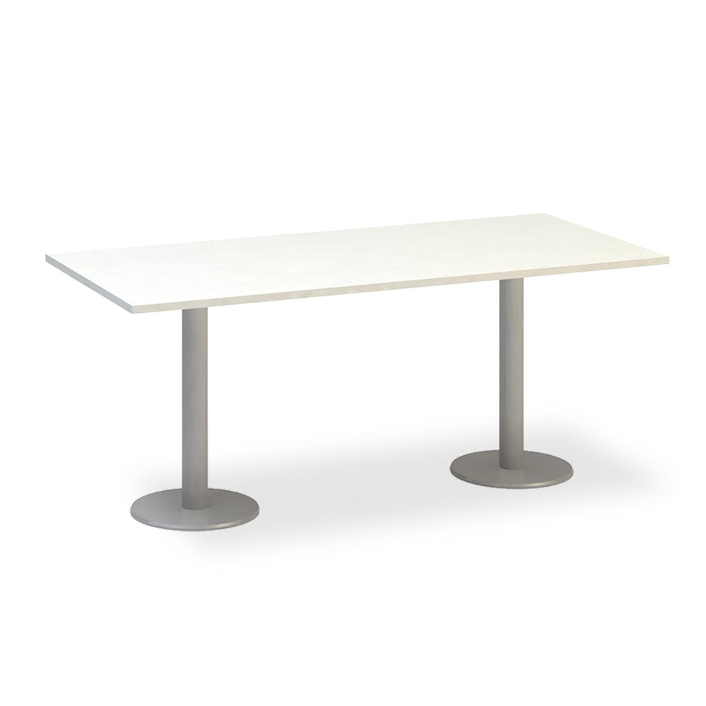 Vrchní deska je vyrobena z laminované dřevotřísky o síle 25 mm. Je postavena na stabilní kovové podnoži, která má kulatý tvar a dodá tak stolu elegantní design.
