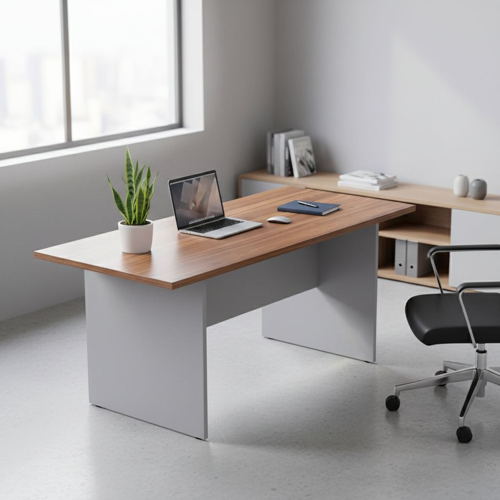 Desky stolů Visio LUX nabízíme ve dvou dezénech, které vám zaručí jednotný vzhled vaší kanceláře. Podnož je v elegantní šedé barvě.