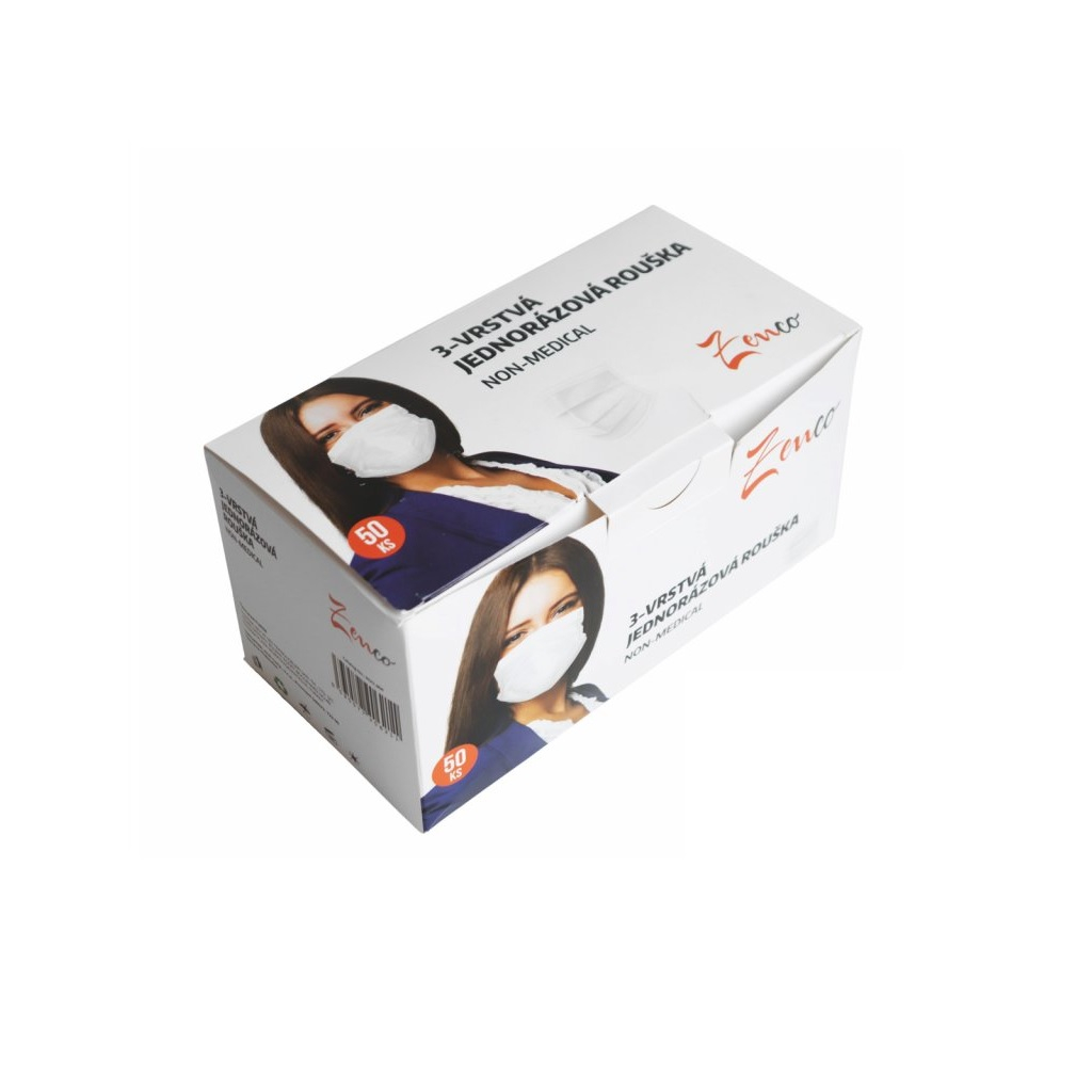 Jednorázová ochranná rouška, 3vrstvá, 50 ks, bílá