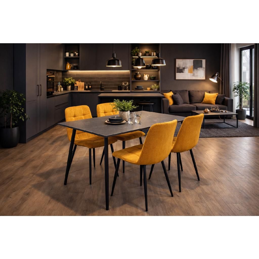 Jídelní set Benetutti 4+1 představuje ideální kombinaci moderního designu a praktického využití. Keramická deska stolu nabízí nejen elegantní vzhled, ale i vysokou odolnost proti poškrábání a snadnou údržbu. Kovová konstrukce stolové podnože zajišťuje pevnost a stabilitu po mnoho let.