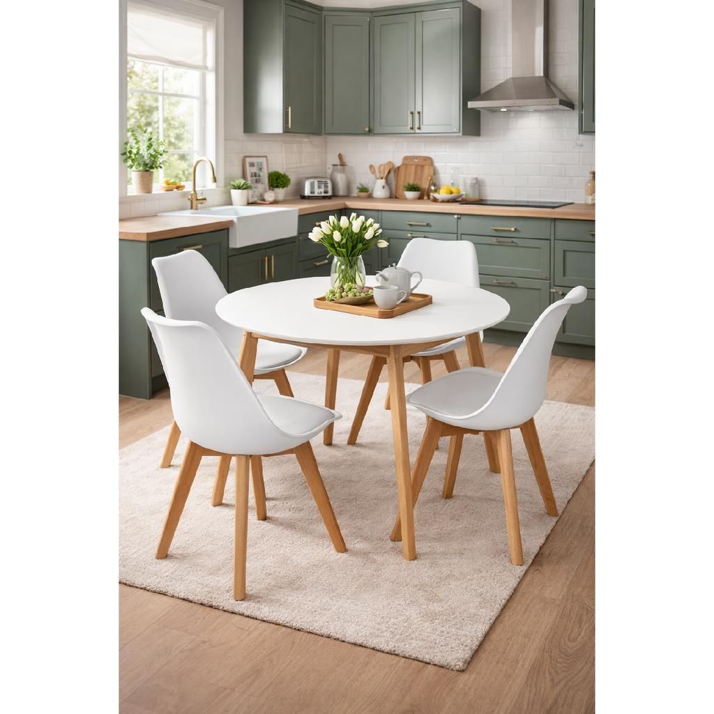 Jídelní set Bizerte 4+1 je ideálním řešením pro všechny, kdo hledají kombinaci jednoduchosti a elegance v moderním stylu. Kulatý stůl s průměrem 105 cm nabízí dostatek prostoru pro pohodlné stolování až čtyř osob, což je perfektní pro rodinné večeře i přátelská setkání. Stabilní dřevěná konstrukce zajišťuje dlouhou životnost a přírodní vzhled, který dodá místnosti teplý a příjemný nádech.