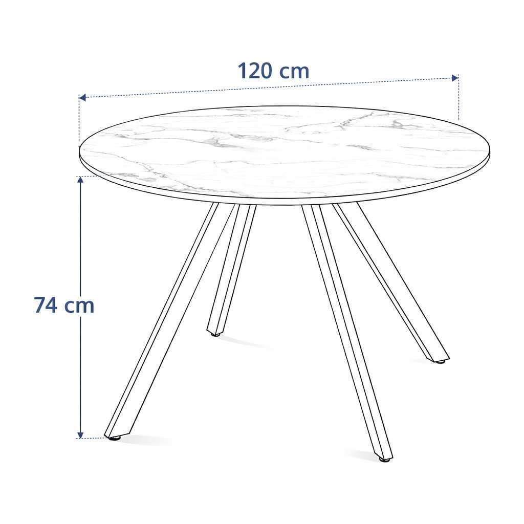 Jídelní set Masainas 4+1 přináší do vaší jídelny spojení elegantního designu a praktické funkčnosti. Kulatý stůl s pevným dřevěným povrchem a kovovou podnoží je vynikající volbou pro společné stolování s rodinou či přáteli. Díky rozměrům 120 x 120 cm a možností usadit až 6 osob se zde pohodlně setkáte na různé příležitosti.