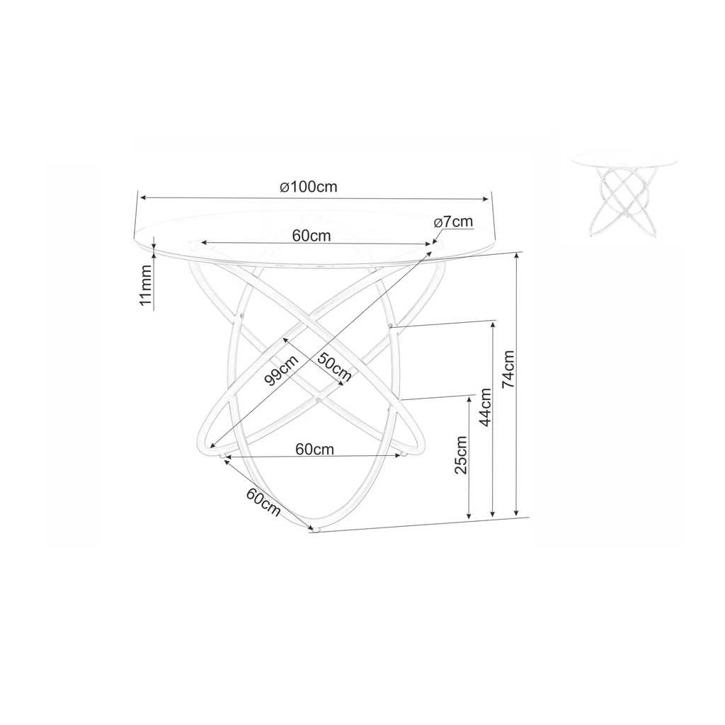 Jídelní stůl Acuto je dokonalou volbou pro moderní interiér s důrazem na styl a funkčnost. Jeho kulatý tvar zajišťuje pohodlné posezení až pro čtyři osoby, což je ideální pro menší rodinné nebo přátelské večeře. Vrchní deska je vyrobena z čirého skla, které dodává stolku lehkost a jednoduchou údržbu.