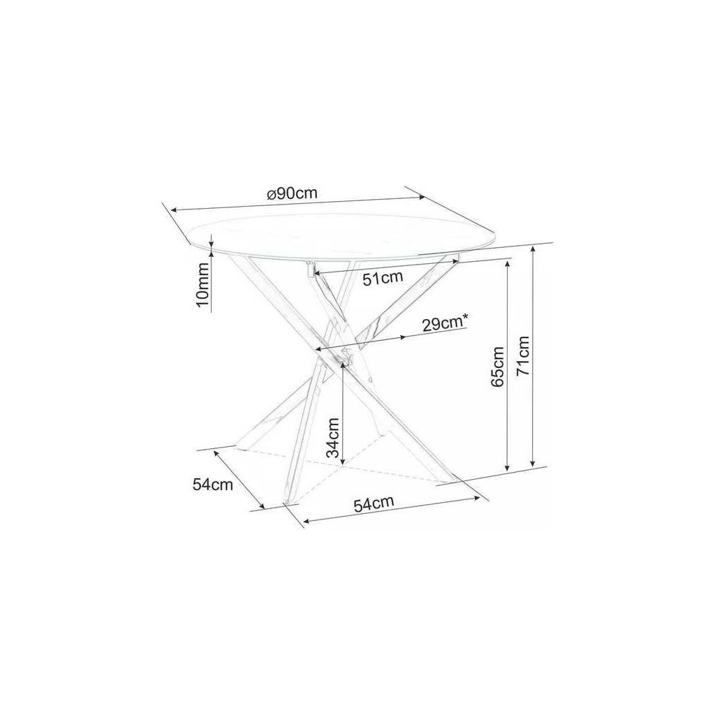 Základnu tvoří unikátní podnož z chromovaného kovu. Jemné zakřivení a křížení nohou je designovou dominantou celého stolu.