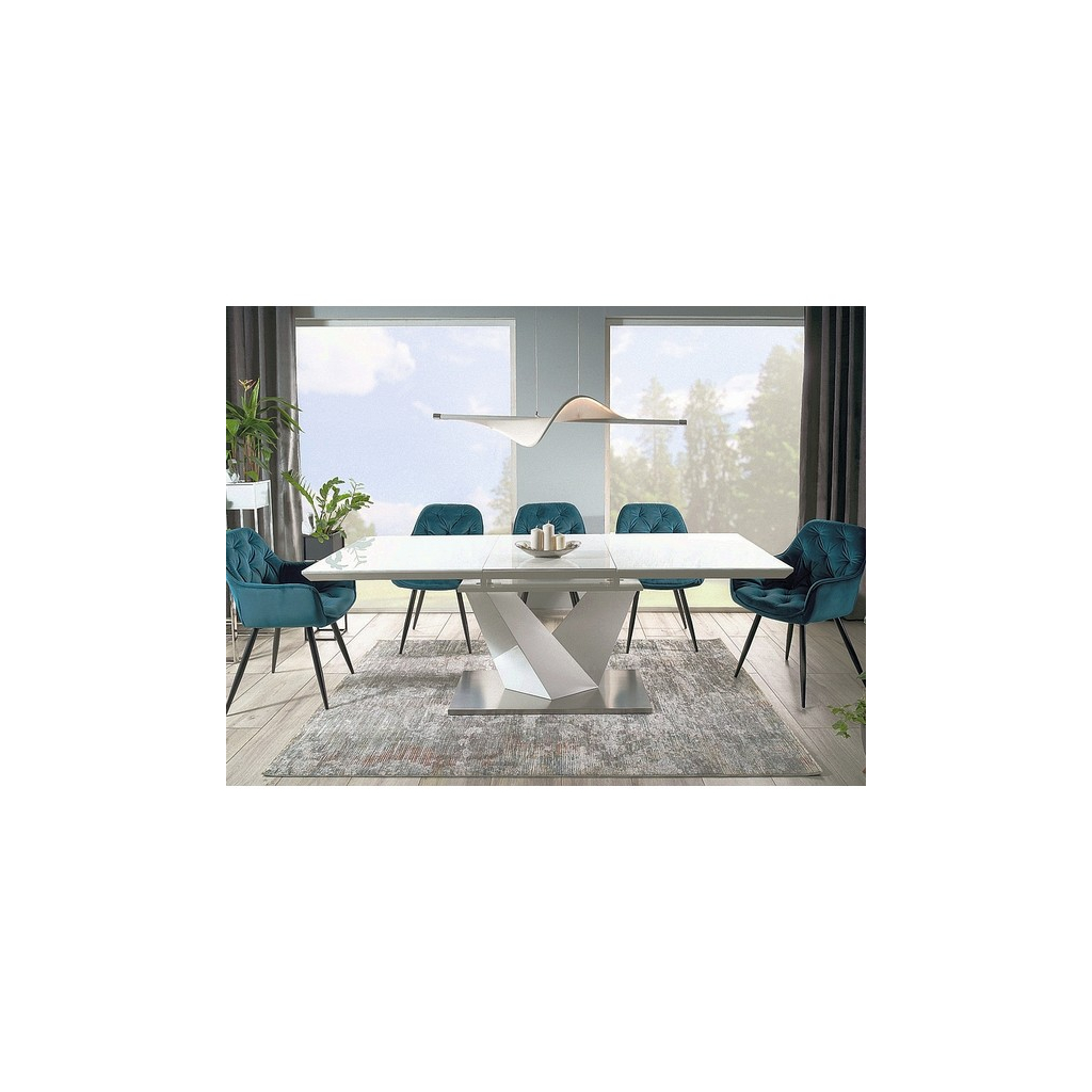 Rozkládací jídelní stůl Alaras III poskytne mnoho prostoru vám i vašim blízkým. Neobvyklou kombinací materiálů skla, dřeva a kovu bude designovou ozdobou vaší jídelny.