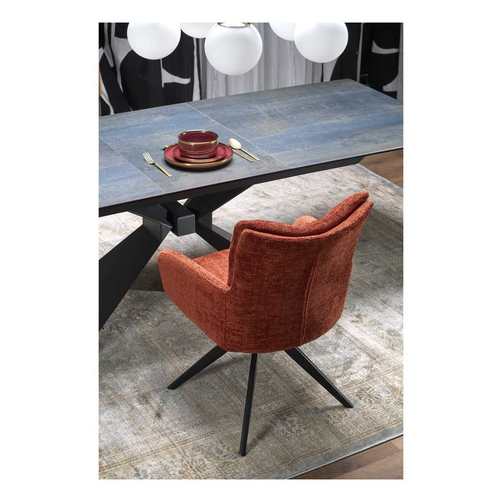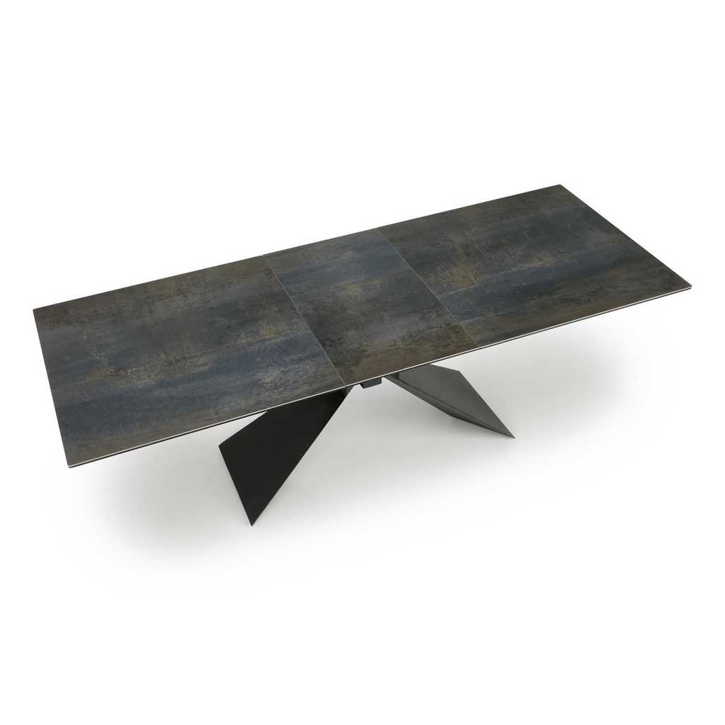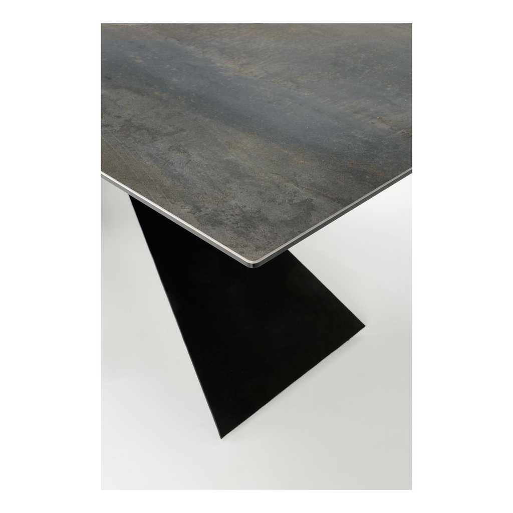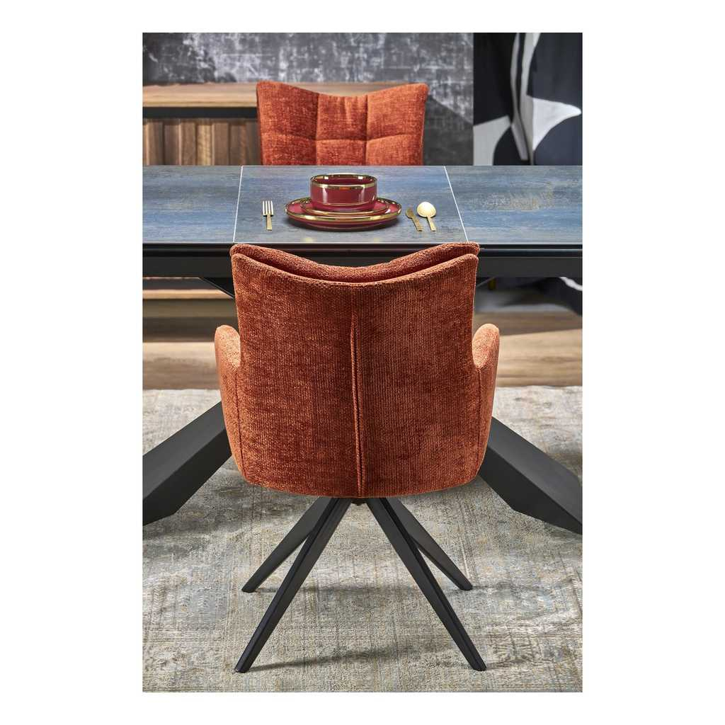 Deska stolu je vyrobena z kombinace keramiky a skla, což dodává stolu nejen honosný vzhled, ale také vynikající odolnost. Keramika je známá svou tvrdostí a odolností vůči poškrábání, zatímco sklo usnadňuje údržbu. Tento povrch je ideální pro každodenní používání, stejně jako pro speciální příležitosti.