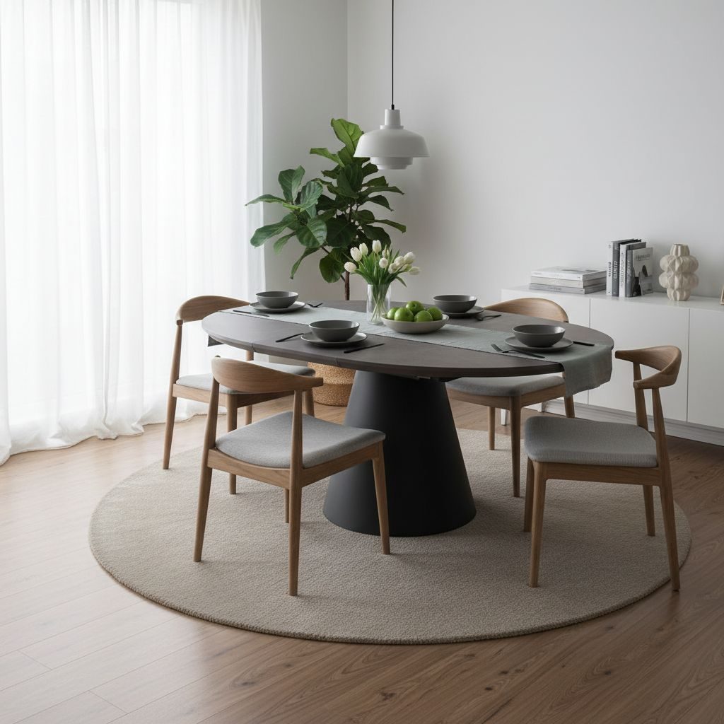 Its tvar horní desky v podobě kruhu či oválu vytváří příjemnou atmosféru a podporuje komunikaci mezi hosty během společných jídel. S výškou 75 cm a hmotností 85,8 kg se jedná o masivní kus nábytku, který bude skvělou dominatou vaší jídelny.