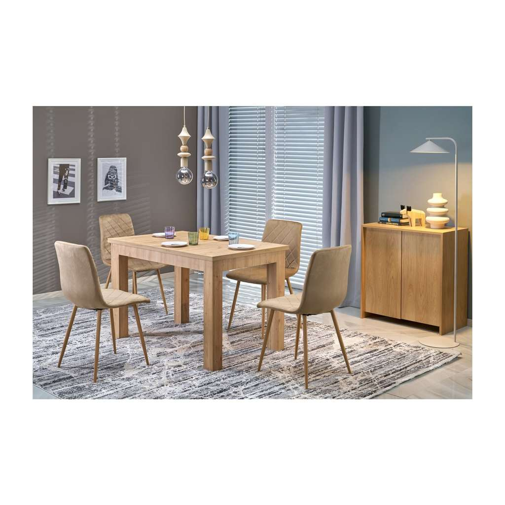 Díky rozkládací funkci snadno zvětšíte jeho délku až na 160 cm, což je ideální řešení pro větší rodinné sešlosti nebo návštěvy. Stůl pohodlně pojme až šest osob, takže nabízí dostatek místa pro společné stolování.