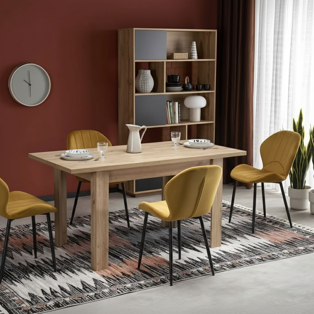 Stůl Aseado je navržen tak, aby vyhovoval různým potřebám. Díky své rozkládací funkci se snadno přizpůsobí každé situaci – v základní velikosti je ideální pro každodenní rodinné večeře, a když přijde více hostů, můžete jej rozložit, čímž vytvoříte pohodlný prostor až pro 6 osob.