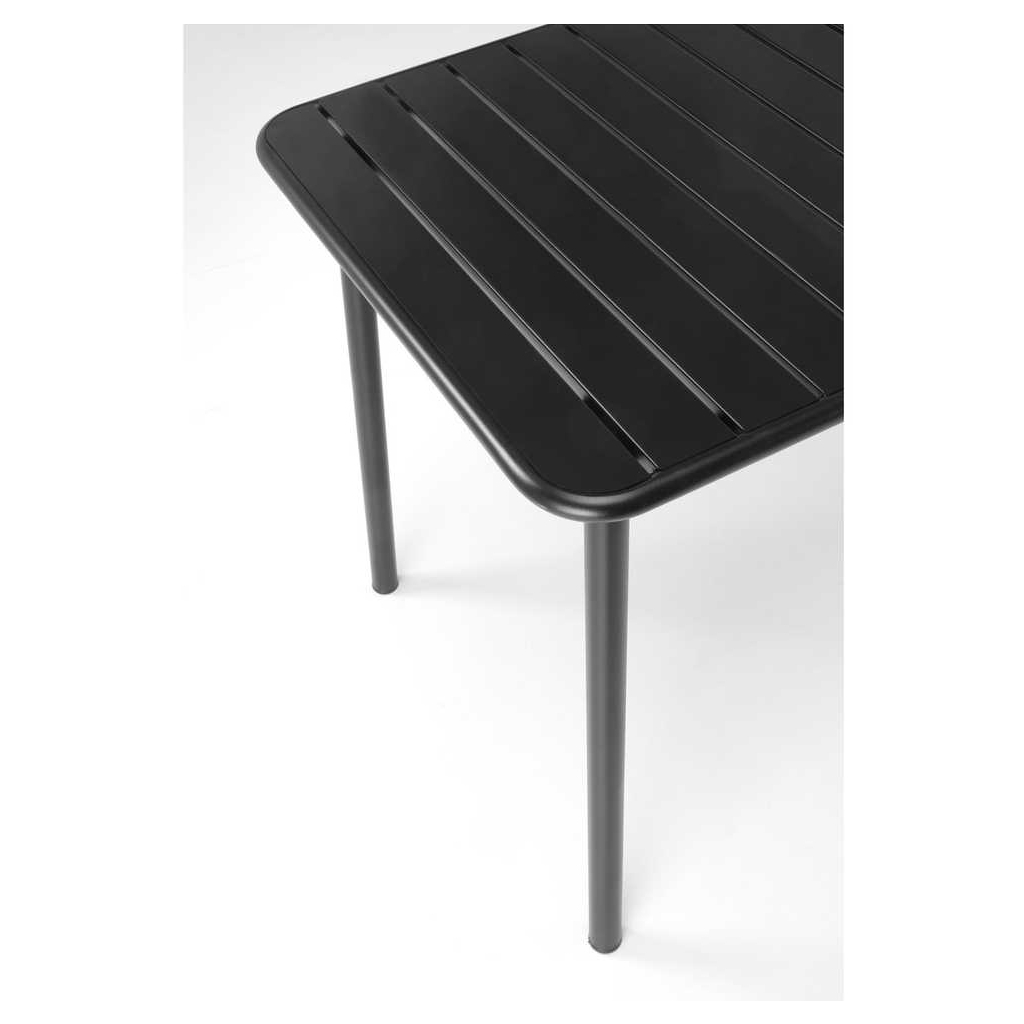 Dělená deska stolu i jeho konstrukce jsou z práškované oceli. Ta zajišťuje odolnost, stabilitu a dlouhou životnost. I přes tyto vlastnosti stůl působí díky jeho provedení vzdušně a subtilně.