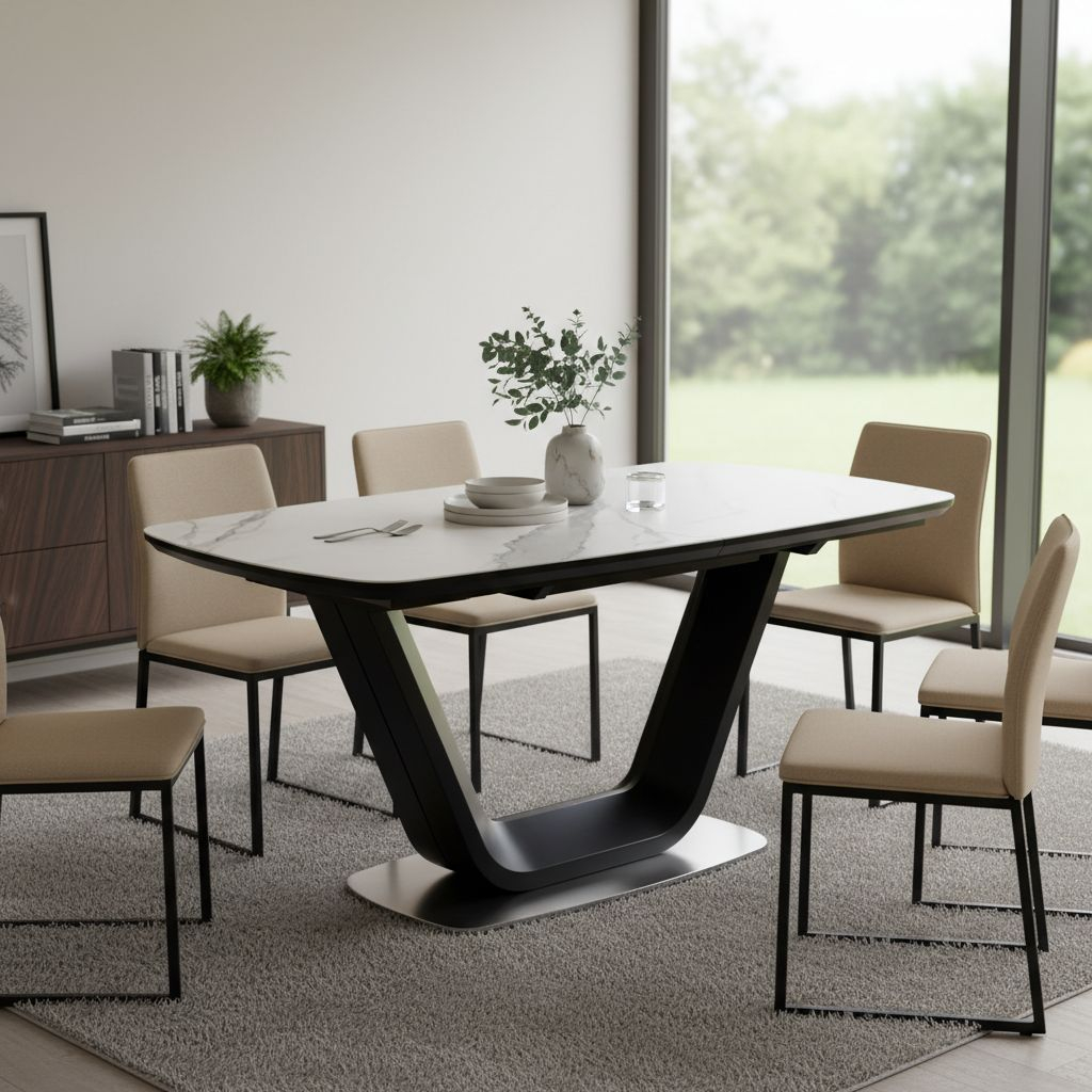 Stůl je specifický svou elegantně tvarovanou konstrukcí, která je vyrobena z pevného kovu a dřevovlákna a i díky rozšířené podstavě zajistí výbornou stabilitu celému stolu. Největší předností stolu je však jeho mohutná dřevovláknitá deska s keramickou vložkou. Ta je v rozloženém stavu tvarovaná do oválu.