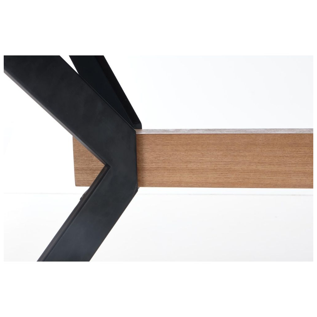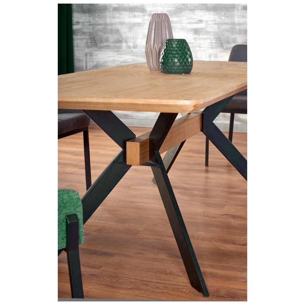Stabilitu stolu zajišťují odolné nohy z práškované oceli. Jsou natřené černou barvou, která harmonicky doplňuje dřevěnou desku.