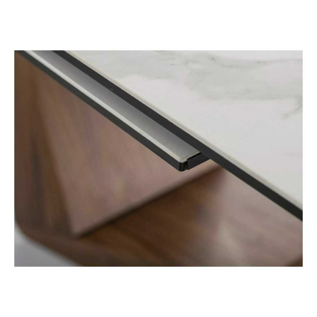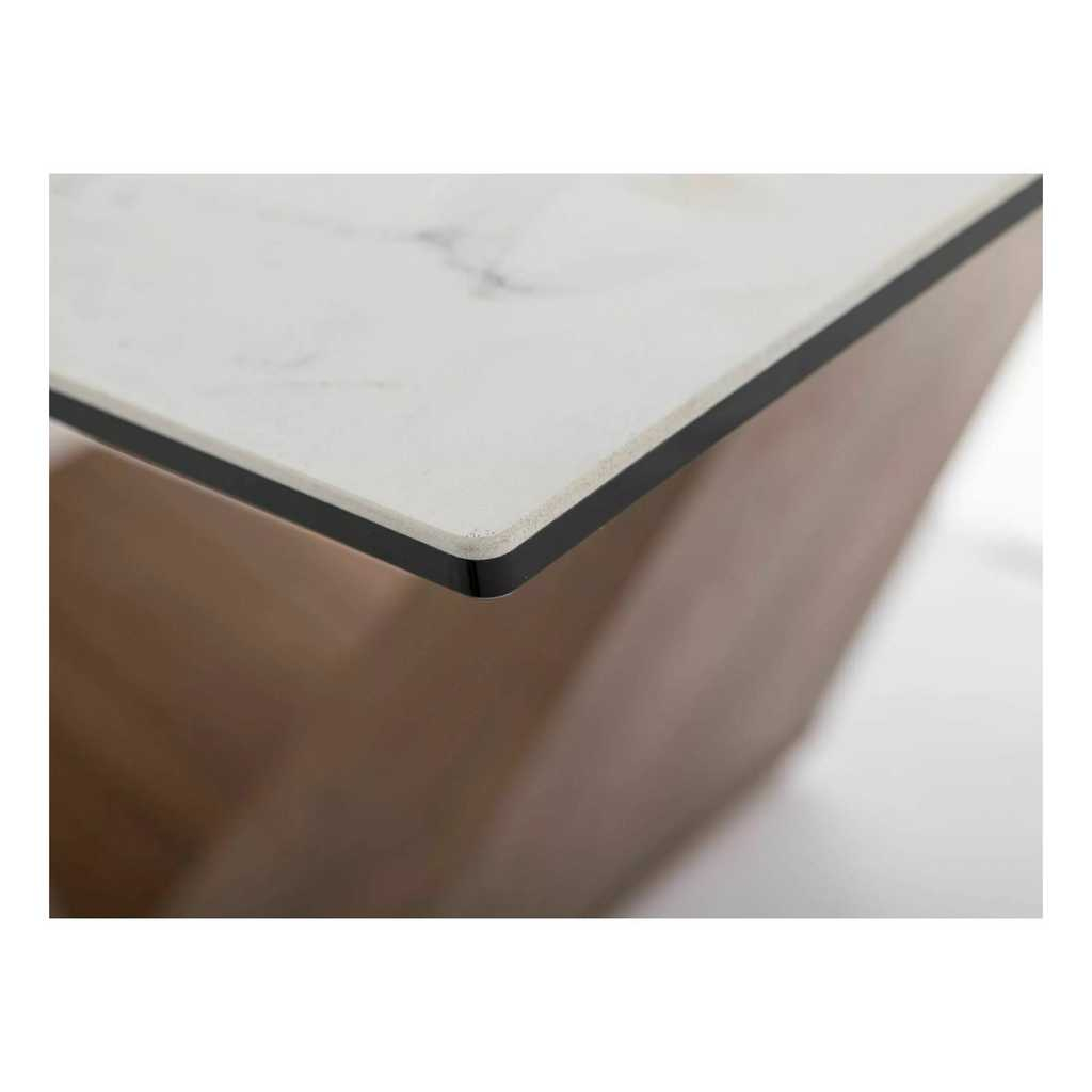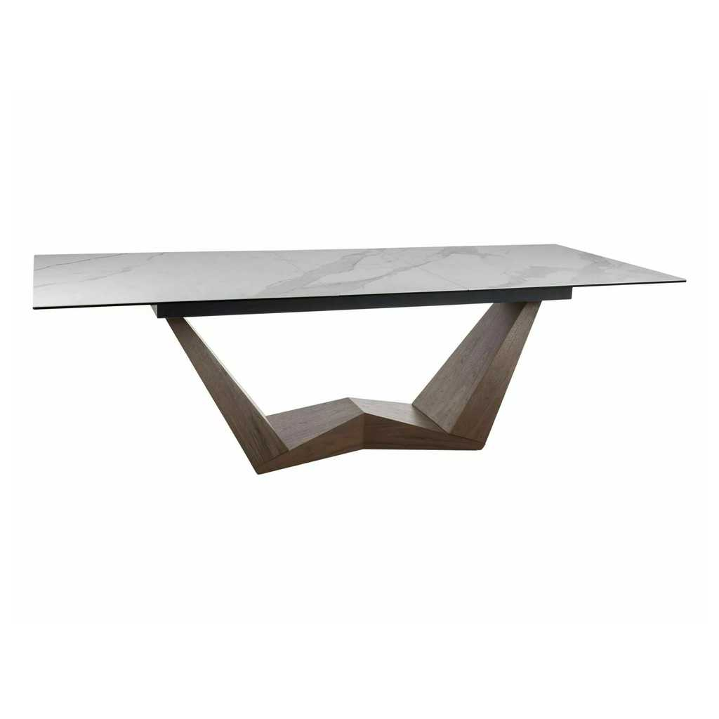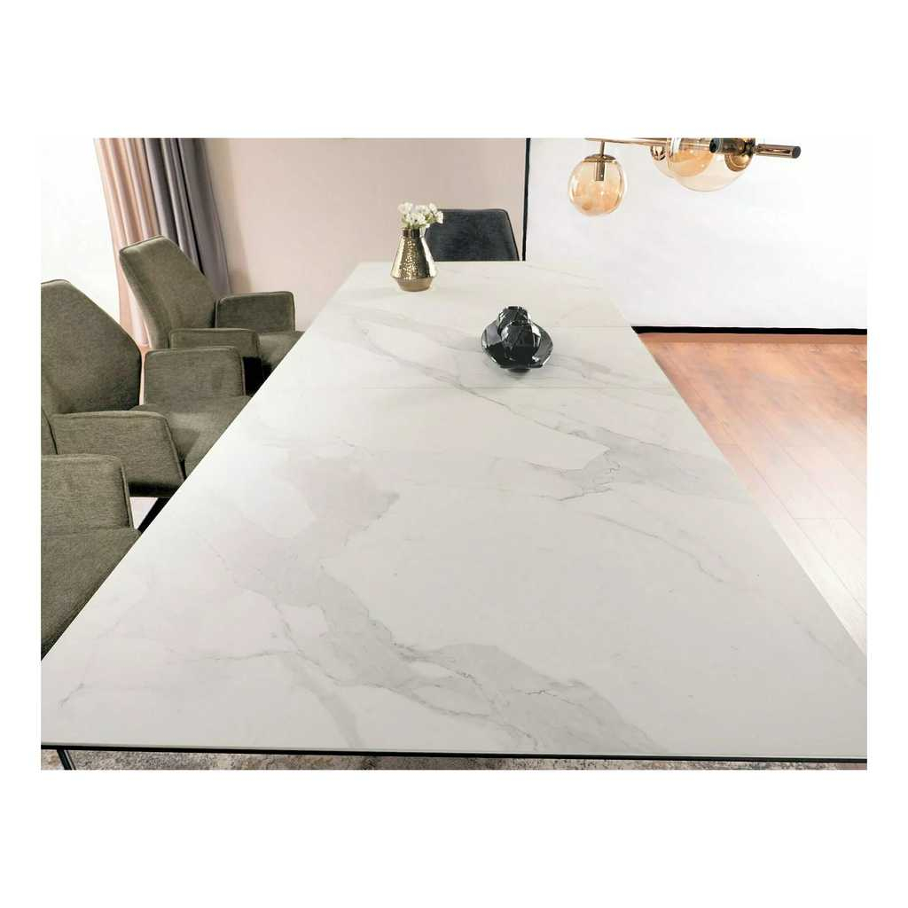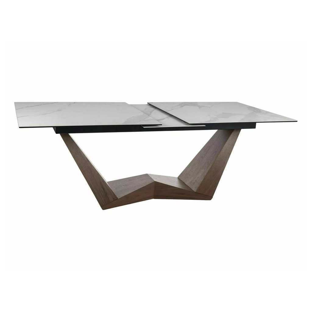 Deska stolu je vyrobená z tvrzeného skla a italské keramiky. Tyto materiály se spojují, aby vytvořily mimořádně odolný, ale i vizuálně úchvatný povrch. Efekt přepychu umocňuje unikátní dekor desky.