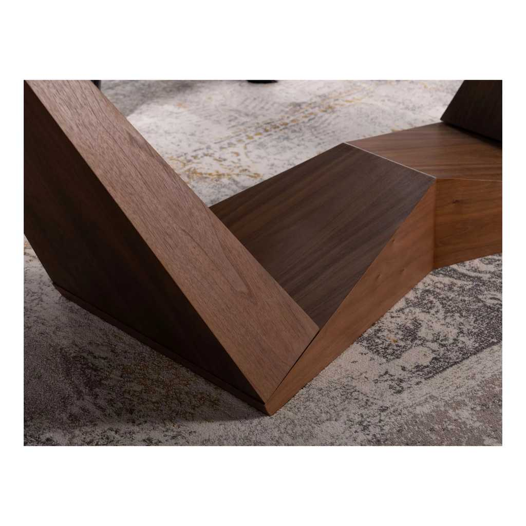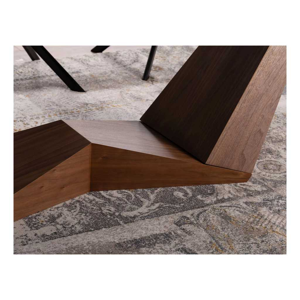 Stabilitu a eleganci stolu dodává jeho podnož tvořená ocelí v imitaci dřeva. Podnož je designovým prvkem a zároveň zajišťuje, že stůl je pevně ukotvený na podlaze.