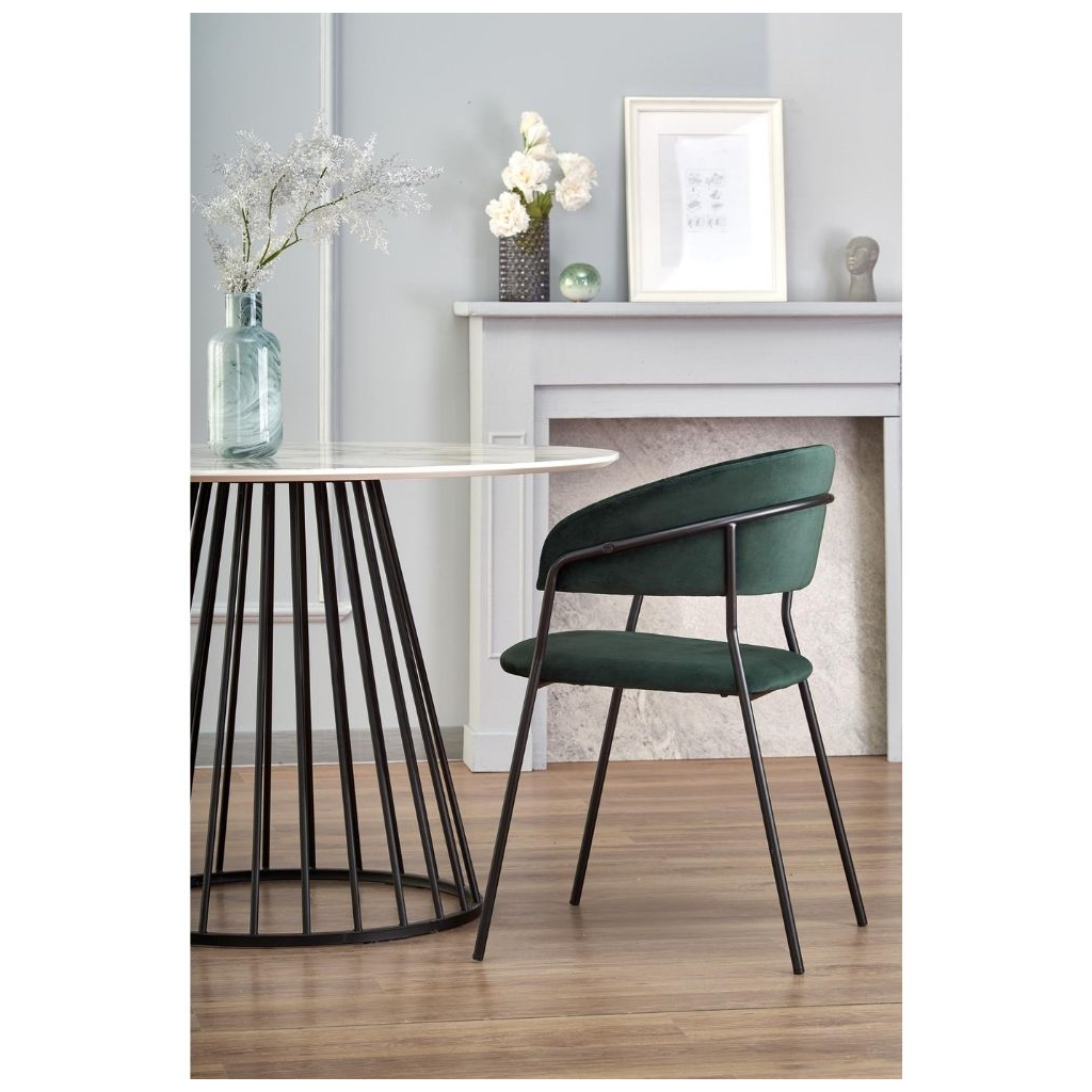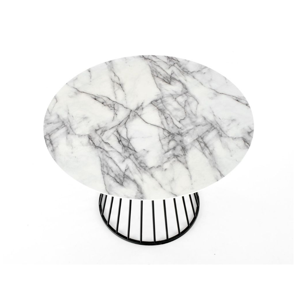 Tento stůl je zkonstruovaný v romantickém stylu. Jeho horní kulatá deska z dýhované MDF je pokrytá vzorem bílého mramoru. Drží ji atypická noha složená z paprsků z práškované oceli. Díky svému vzhledu perfektně zapadne do interiéru romanticky laděných kaváren i restaurací.