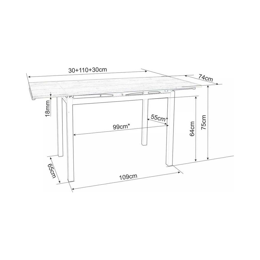 Deska stolu je z dýhovaného dřevovlákna (MDF) o síle 18 mm. Doplňuje ji robustní kovová podnož, díky které je stůl stabilní a při rovnoměrném zatížení garantuje nosnost do 100 kg.