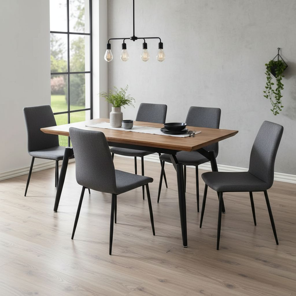 Prodloužení desky stolu je prakticky schované pod horní deskou. Pevnost a stabilitu zajistí kovové nohy z práškované oceli.