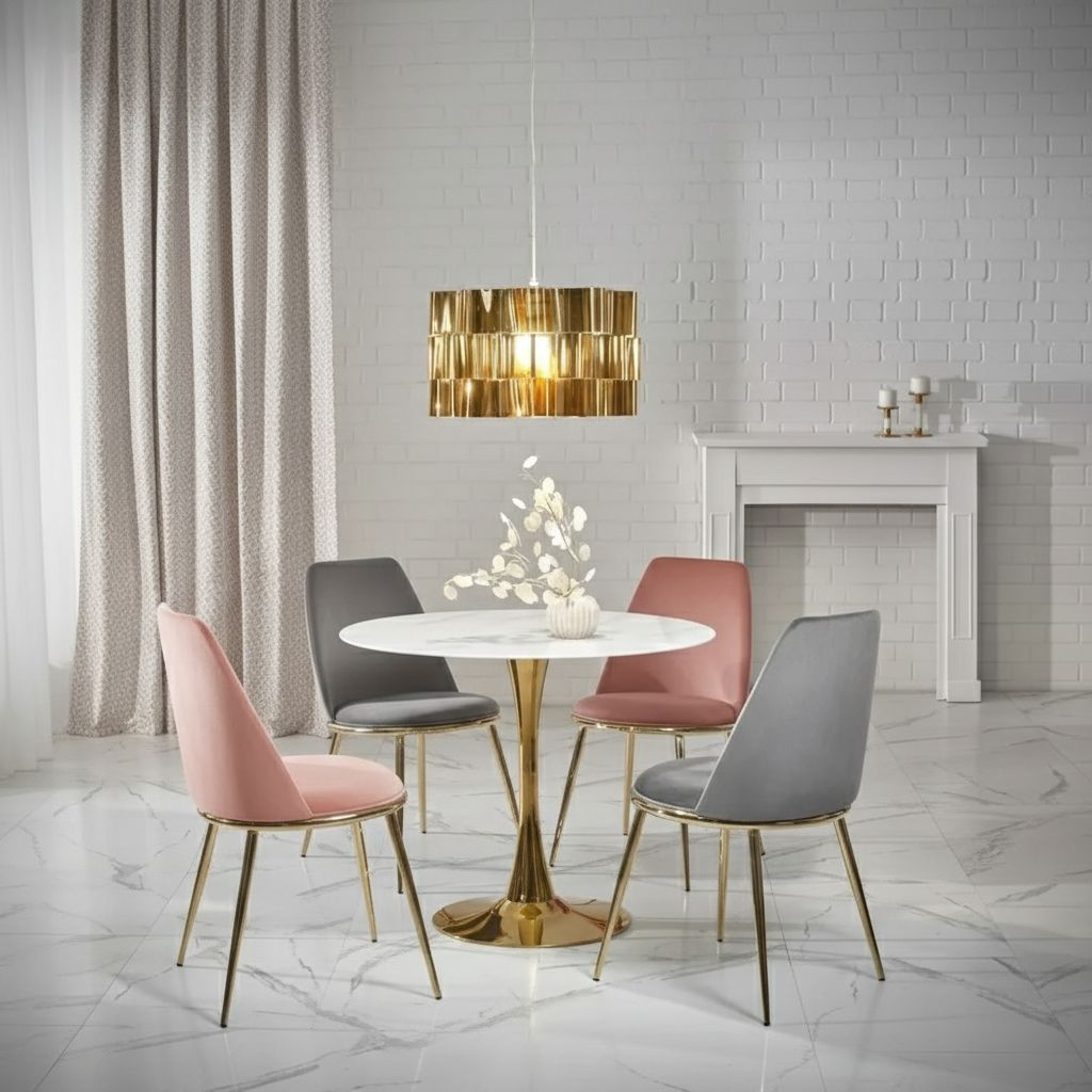 Jídelní stůl Casemiro bude rozhodně ozdobou vaší jídelny, kavárny či bistra nebo lobby. Elegantní provedení stolu doprovází nádech honosnosti díky zlaté barvě podnože a efektu mramoru na desce.