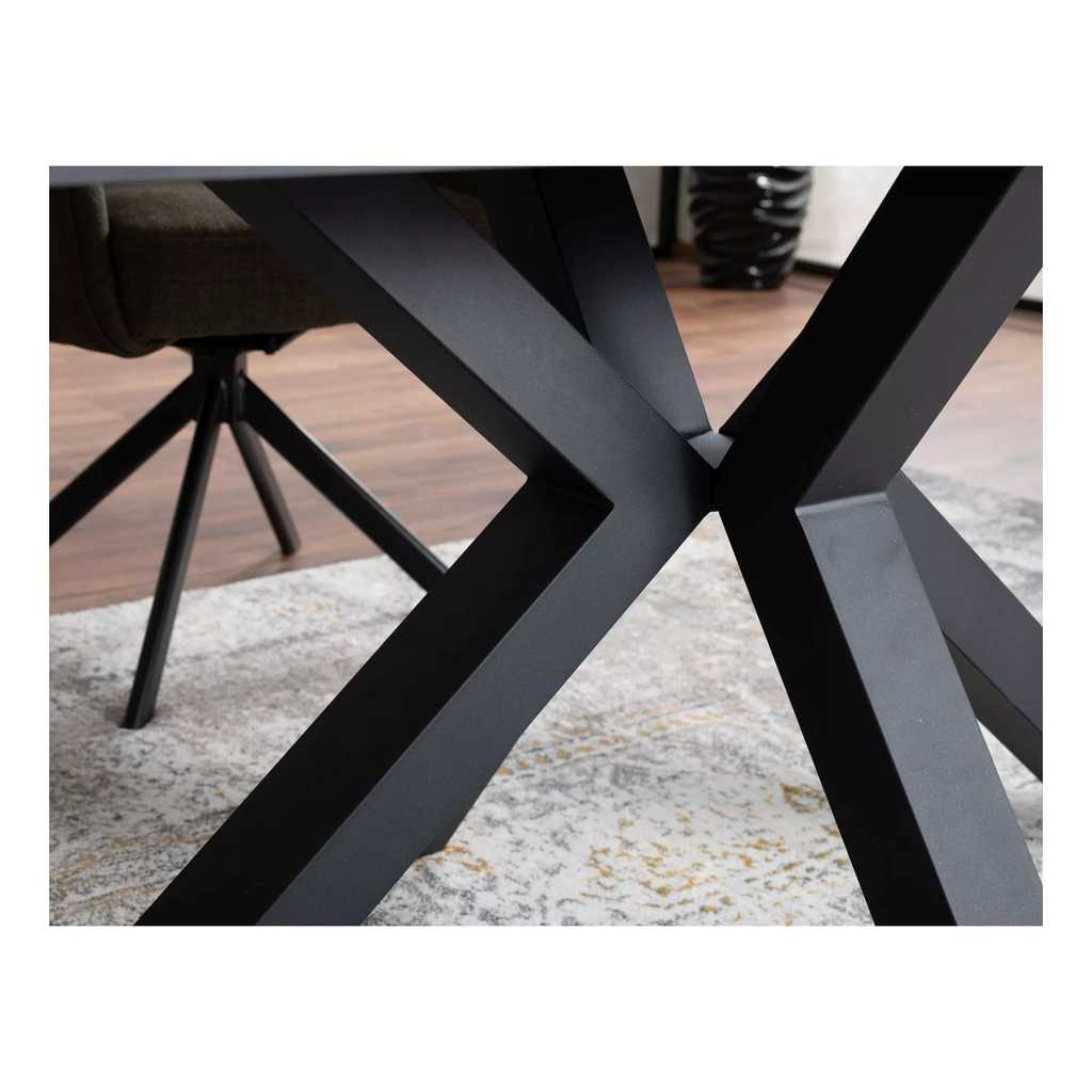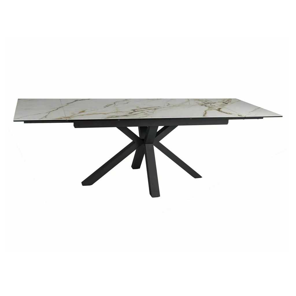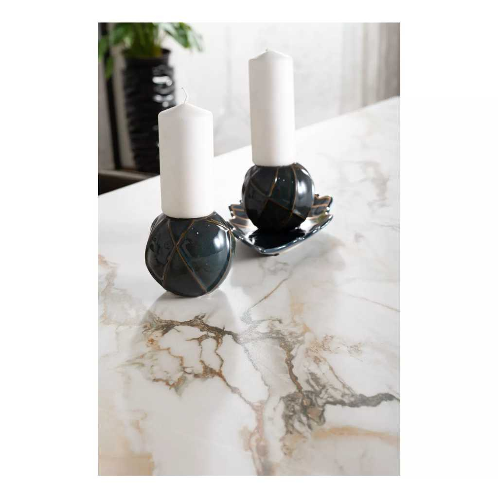 Deska stolu je vyrobená z tvrzeného skla a španělské keramiky. Tyto materiály se spojují, aby vytvořily mimořádně odolný, ale i vizuálně úchvatný povrch.