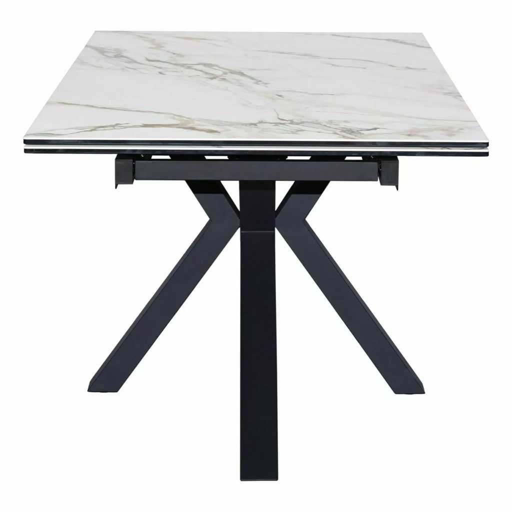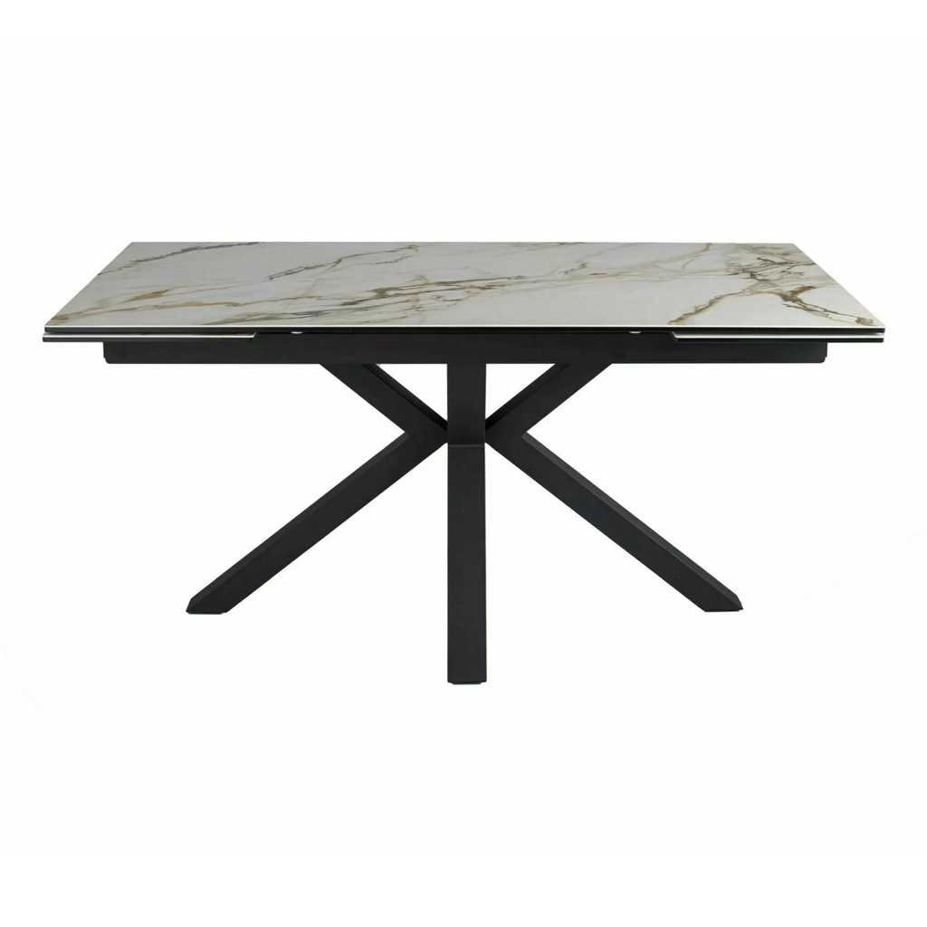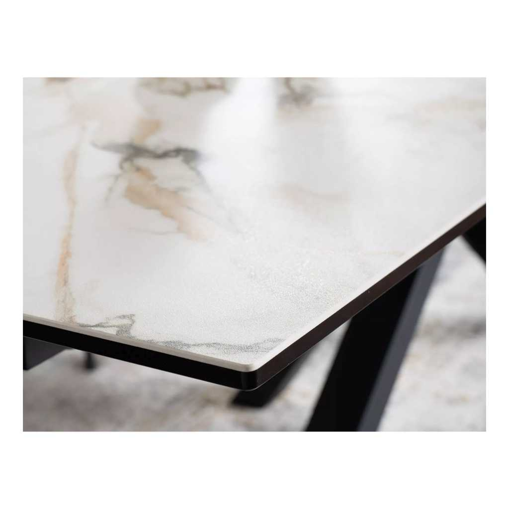 Deska stolu je vyrobená z tvrzeného skla a španělské keramiky. Tyto materiály se spojují, aby vytvořily mimořádně odolný, ale i vizuálně úchvatný povrch.