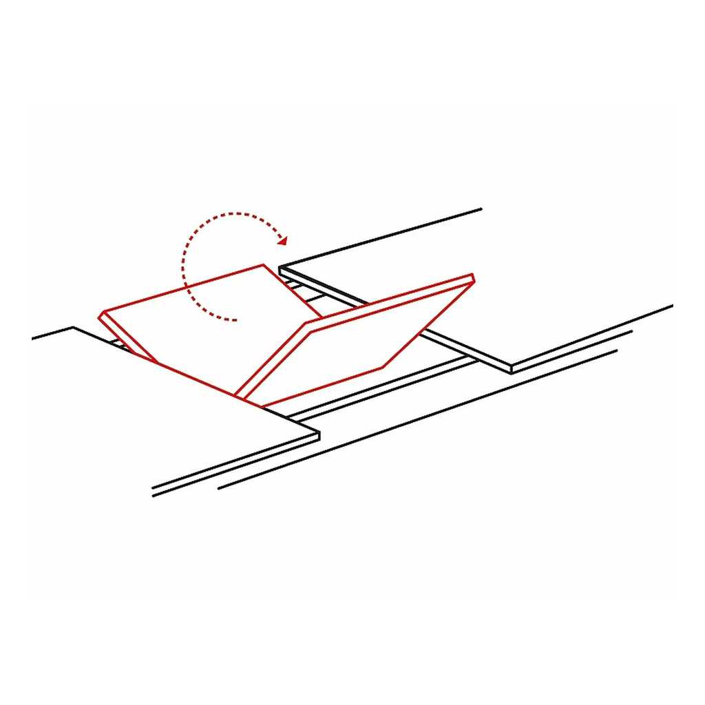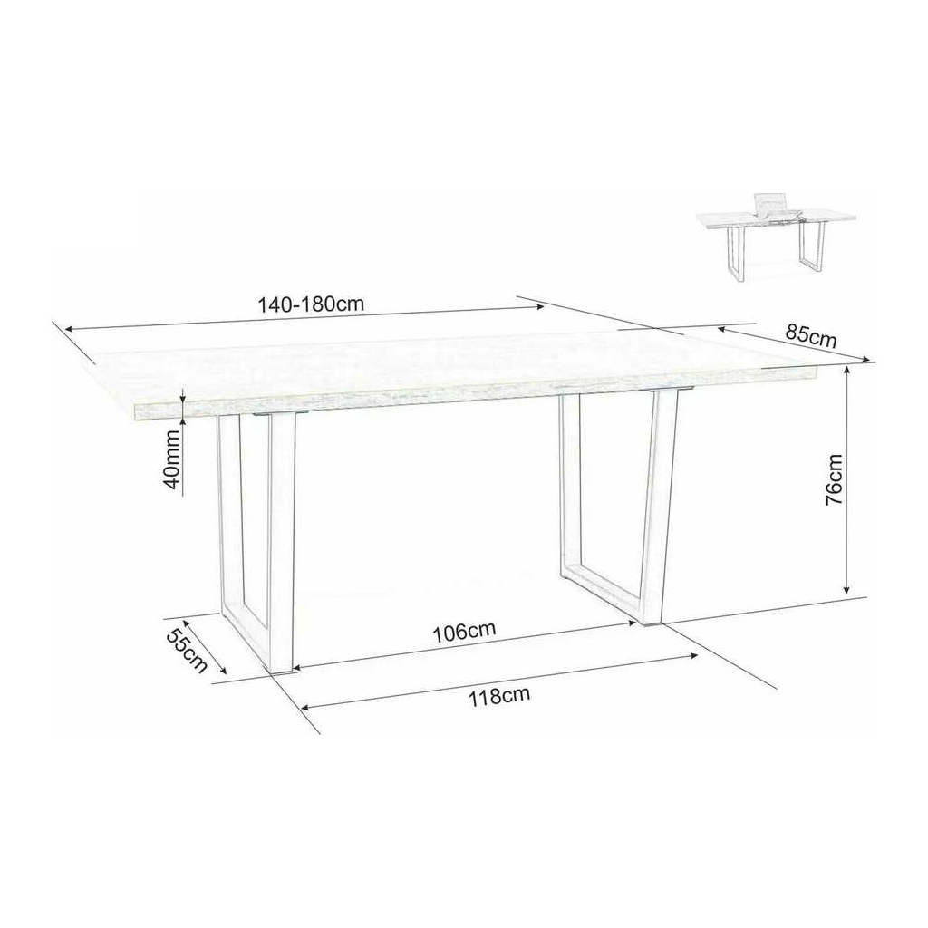 Horní deska stolu je z dýhovaného dřevovlákna (MDF) o síle 40 mm. Před rozložením má horní deska délku 140 cm a hloubku 85 cm – ideální pro 4 až 5 osob.