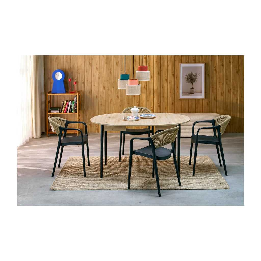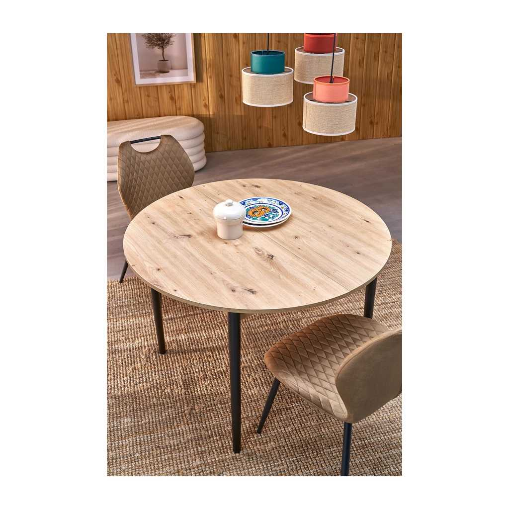 Jídelní stůl Darren je praktickým a stylovým kouskem nábytku do každé jídelny nebo kuchyně. Díky rozkládací funkci jej snadno přizpůsobíte aktuálním potřebám – v základním provedení poskytuje pohodlné místo pro 4 osoby, po rozložení délky dosahuje až 142 cm. Stůl má zajímavý tvar horní desky, který je kombinací kruhu a oválu, což dodává prostorům moderní a elegantní vzhled.