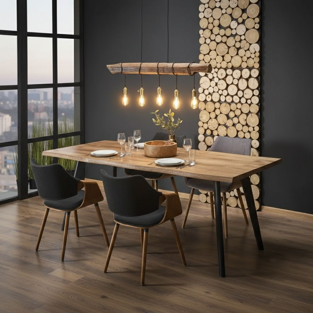 Jídelní stůl Dickson, přírodní dřevo / černá