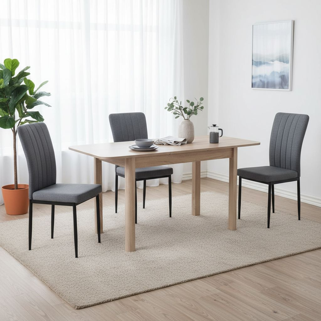 Horní deska stolu je z laminované dřevotřísky o síle 18 mm. Před rozložením má horní deska délku 120 cm a hloubku 68 cm – ideální pro 2–3 osoby.