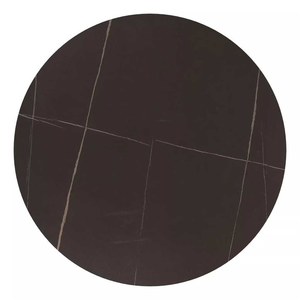 Horní desku tvoří kruh z keramiky o síle 12 mm a průměru 80 cm. Její matný povrch zdobí decentní žíhaná textura.