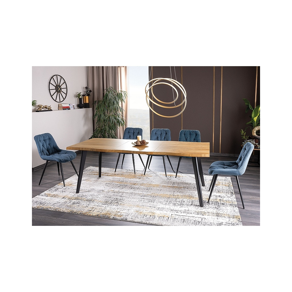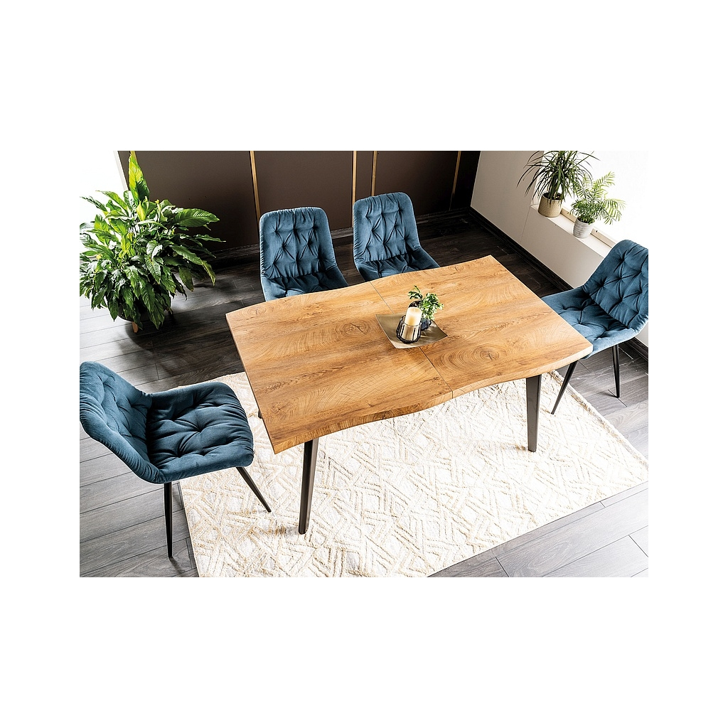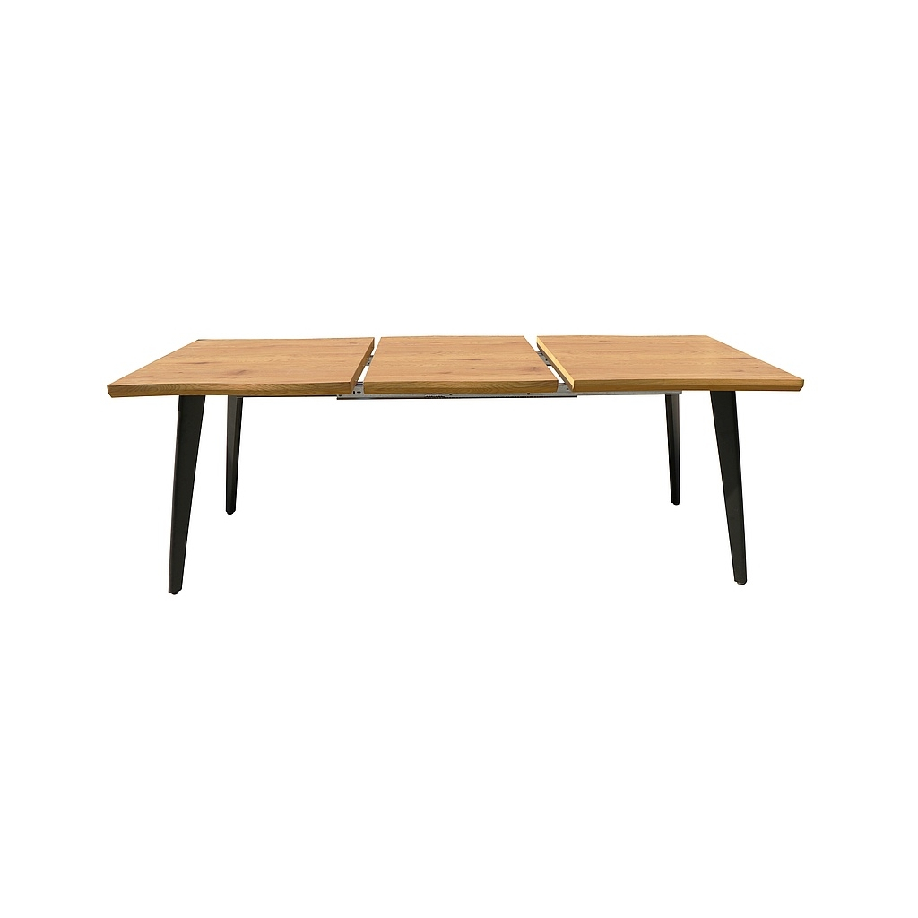Po designové stránce stůl Fresno II sází na nadčasovou kombinaci dřeva a černého matu. Jemně vlnité okraje dávají desce až takřka rustikální punc, který zaujme v každém interiéru. Hned o několik centimetrů níže už ale začíná 21. století – díky rozkládacímu mechanismu můžete stůl za pár chvil prodloužit o 60 cm a usadit až osm přátel, kolegů či klientů.