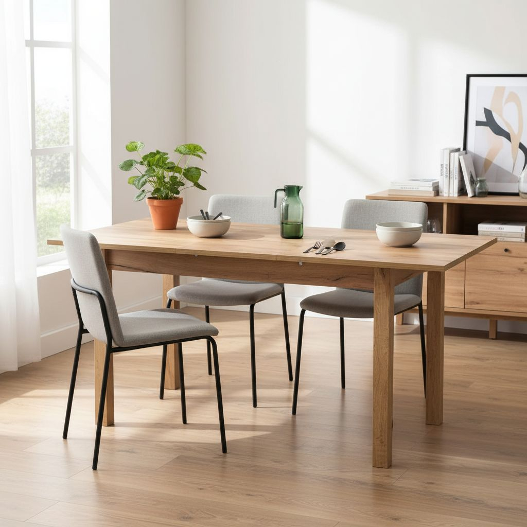 Největší výhodou stolu je však možnost jeho rozložení. Jednoduchým přidáním desky, umístěné pod hlavní deskou, tak vytvoříte prostor pro další 2 osoby. Stůl k vám doputuje rozmontovaný, jeho sestavení se však nemusíte obávat. S přiloženým návodem to bude hračka.