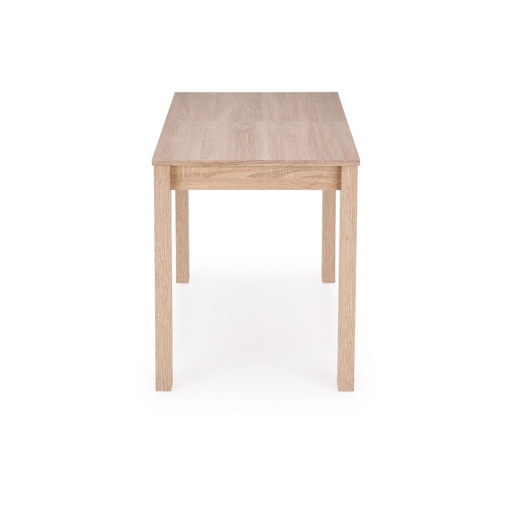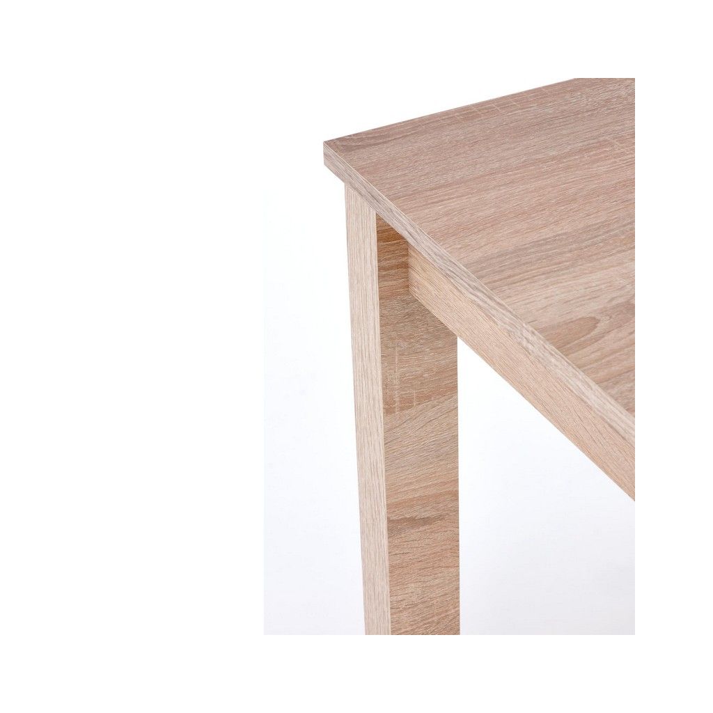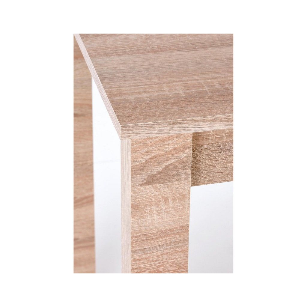 Horní deska i nohy stolu jsou vyrobené z dřevovláknitých desek. Výhodou tohoto materiálu je především odolnost, nenákladnost a snadná údržba. Čistý stůl si udržíte pár tahy vlhkým hadříkem.