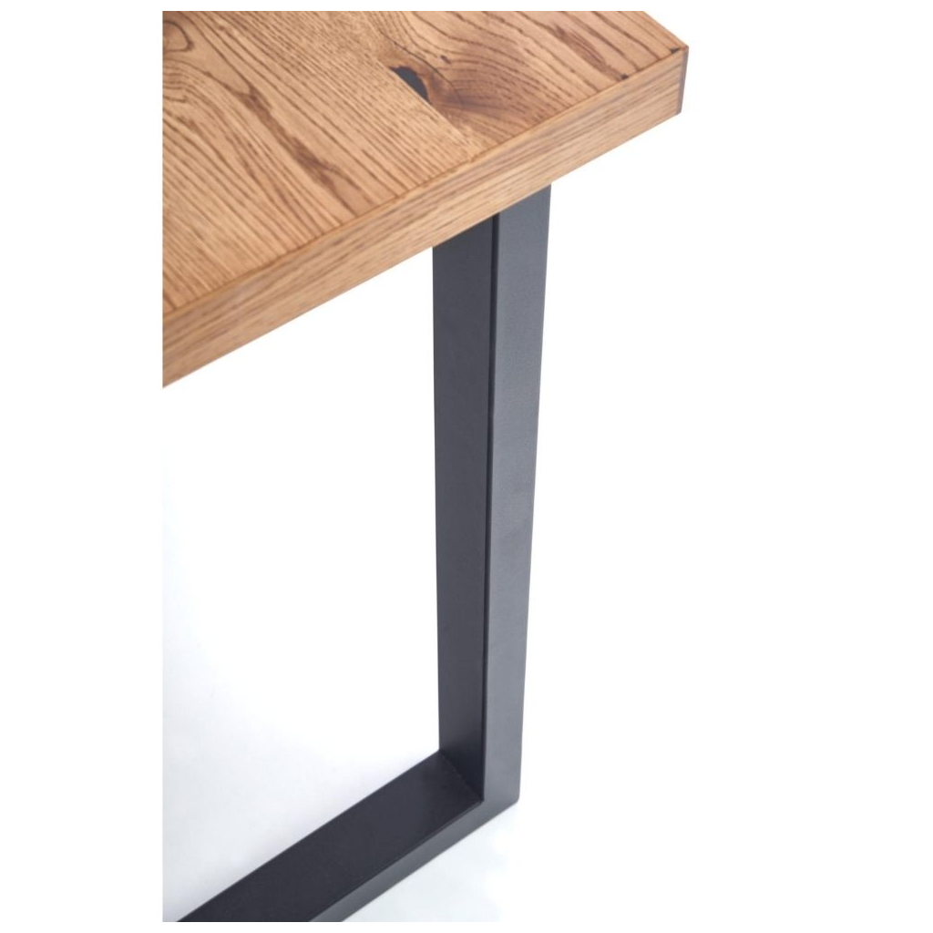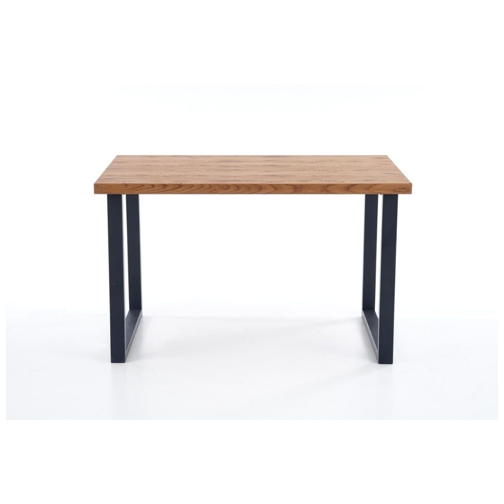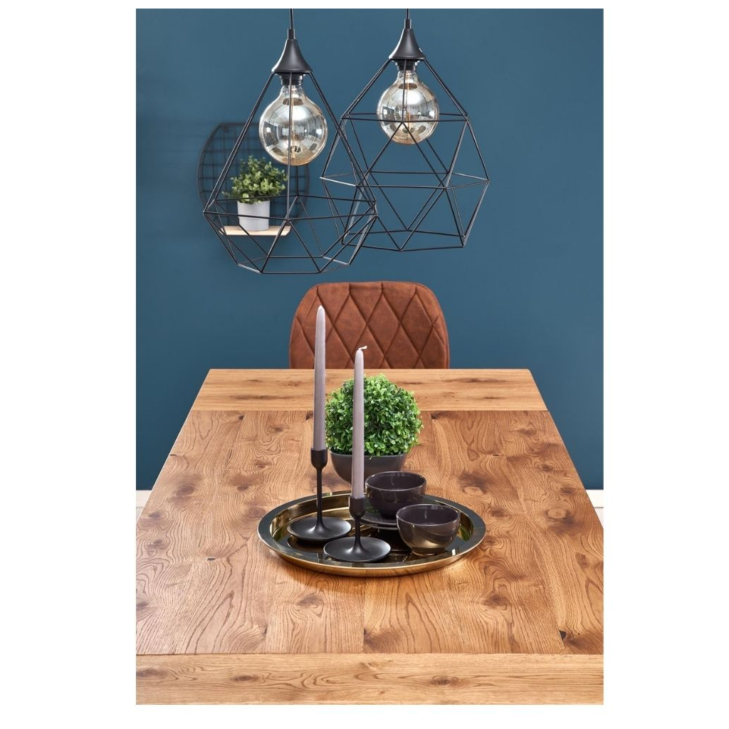 Ocelové nohy jsou černě lakované a dodávají stolu krásný a přírodní vzhled. Jídelní plocha je zhotovena z dýhované MDF desky v dekoru přírodního dřeva.