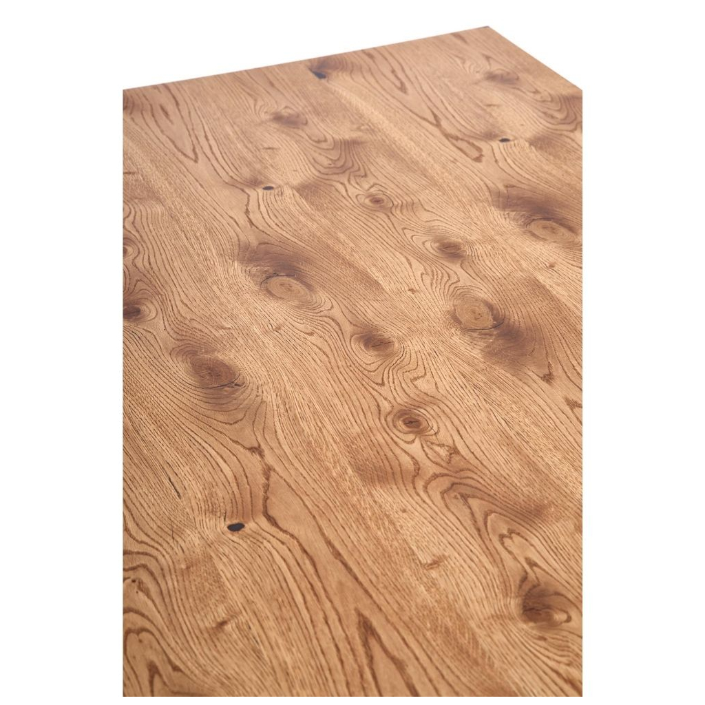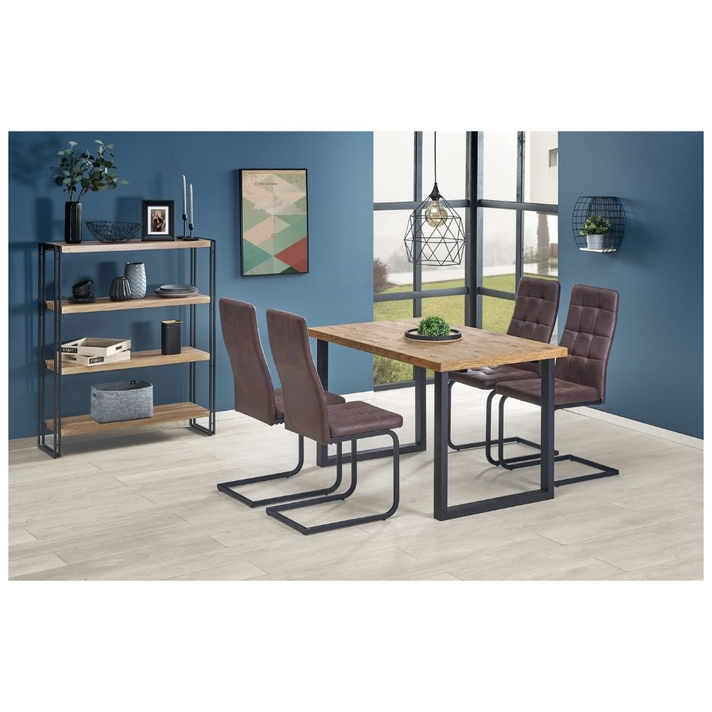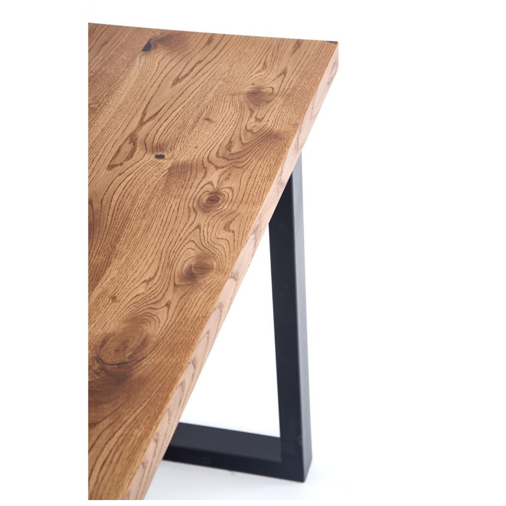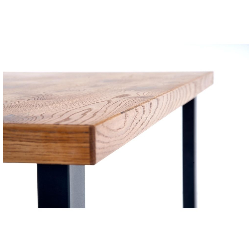 Ocelové nohy jsou černě lakované a dodávají stolu krásný a přírodní vzhled. Jídelní plocha je zhotovena z dýhované MDF desky v dekoru přírodního dřeva.