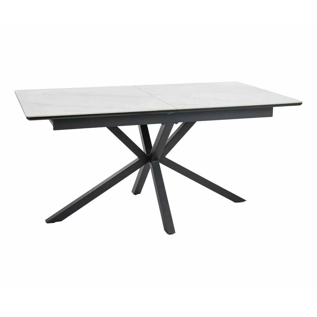 Horní deska stolu je silná celkem 35 mm a kombinuje keramiku s MDF. Před rozložením má délku 160 cm a hloubku 90 cm – bohatě vystačí pro 4 osoby.