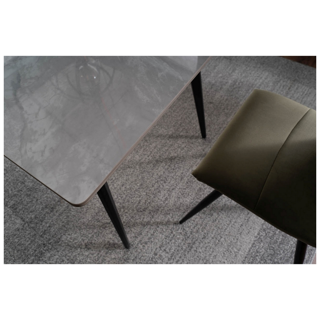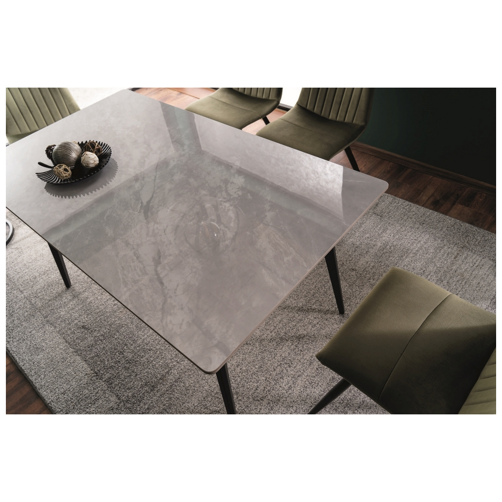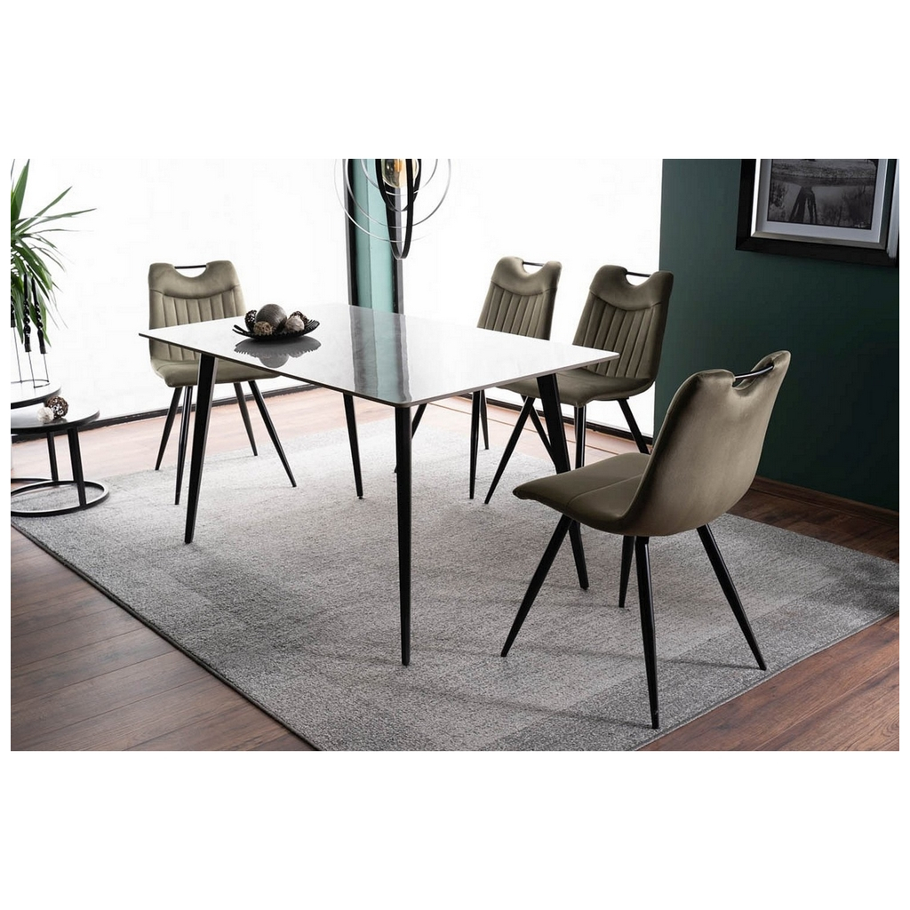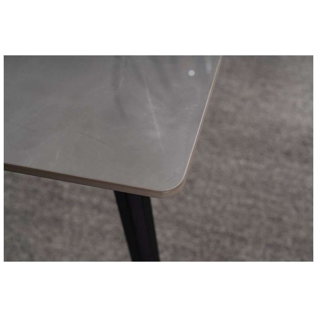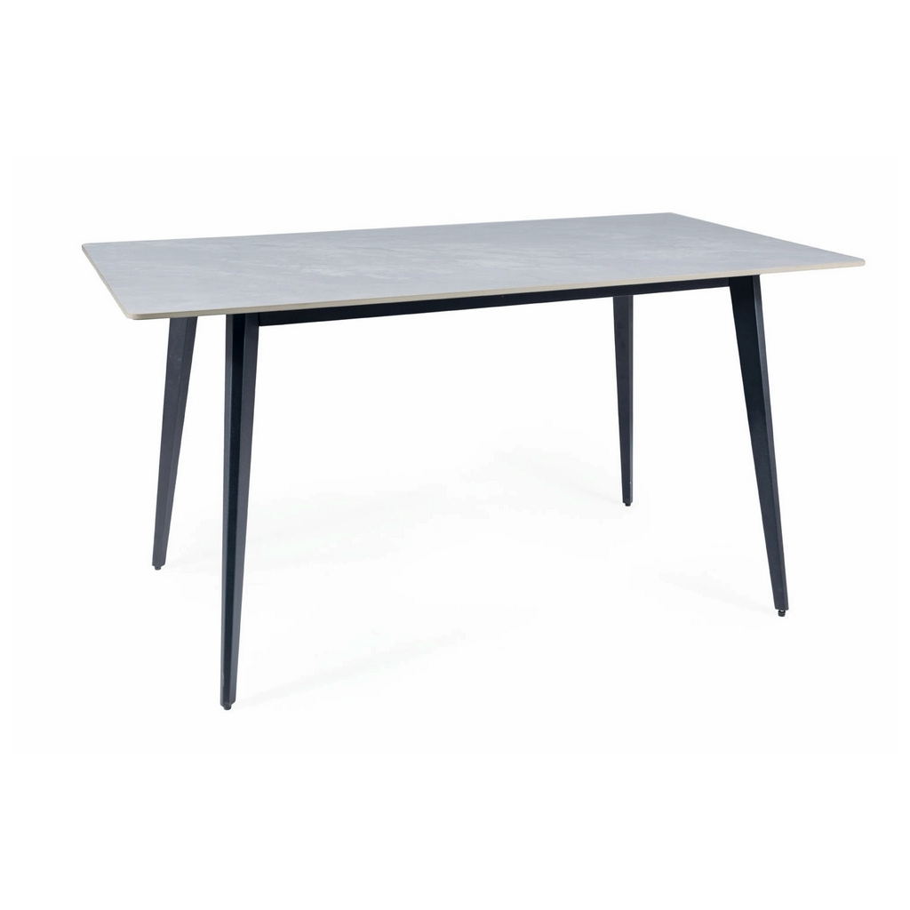 Jeho lesklá obdélníková deska z keramiky s jemným vzhledem mramoru je dokonalým protikladem k ostrým černým nohám. Ty tvoří kov, kromě nadčasového designu tak nabízejí i stabilní podporu.