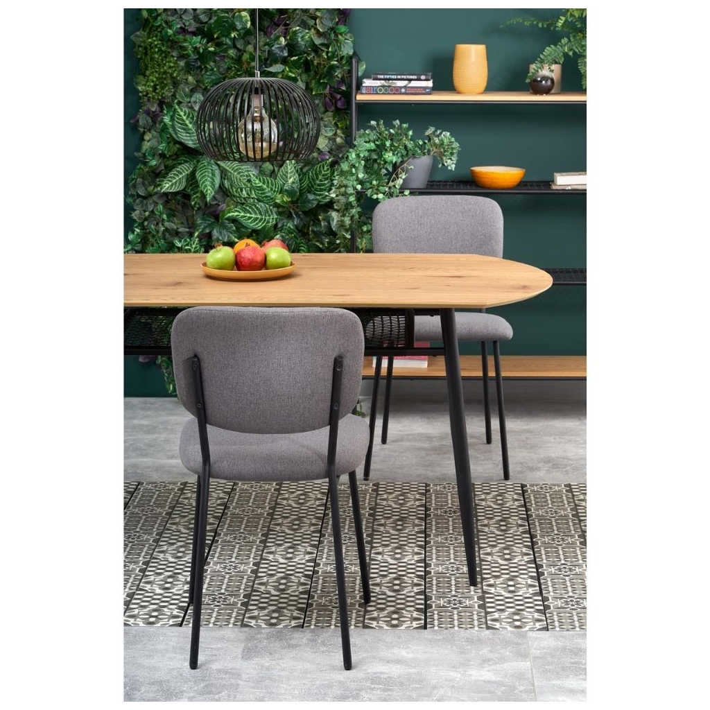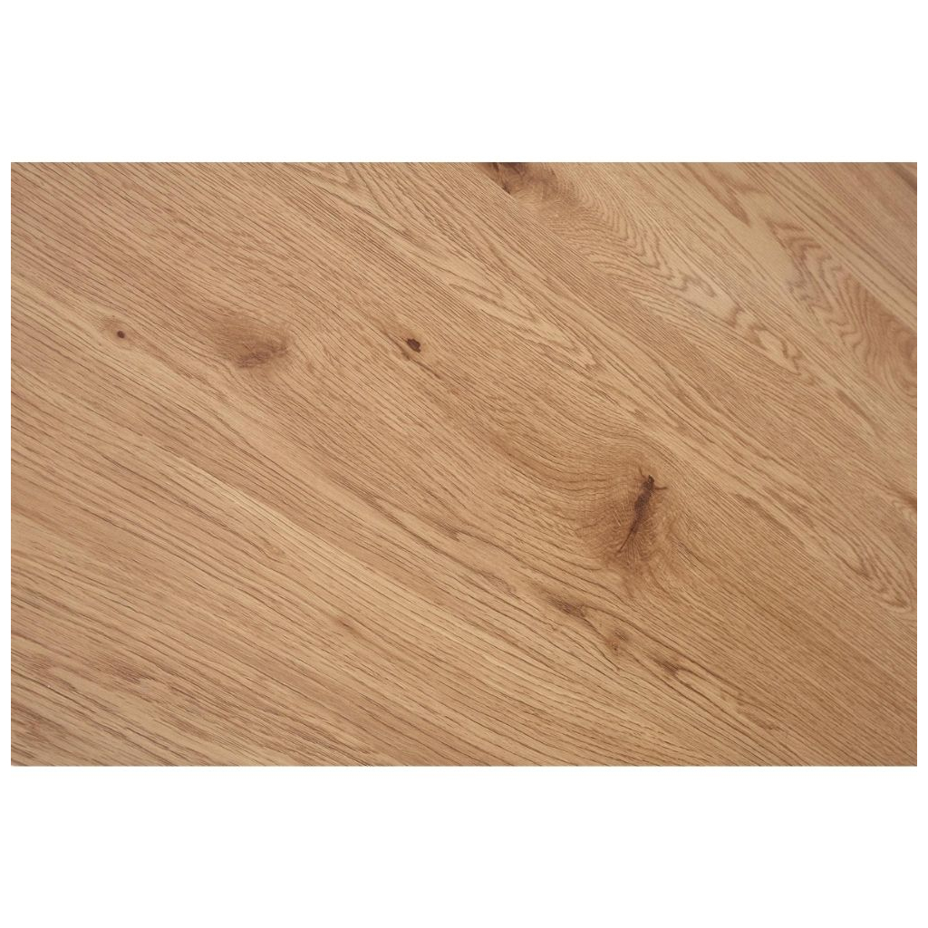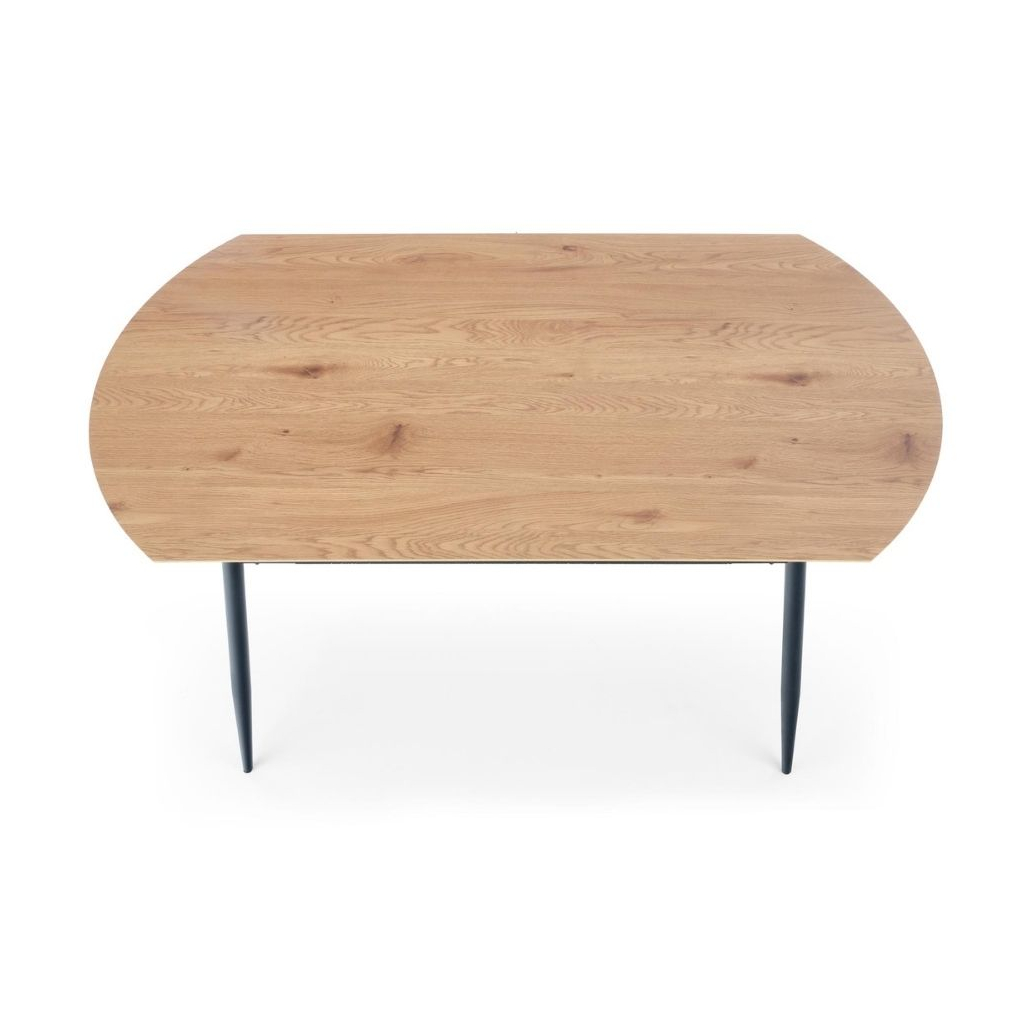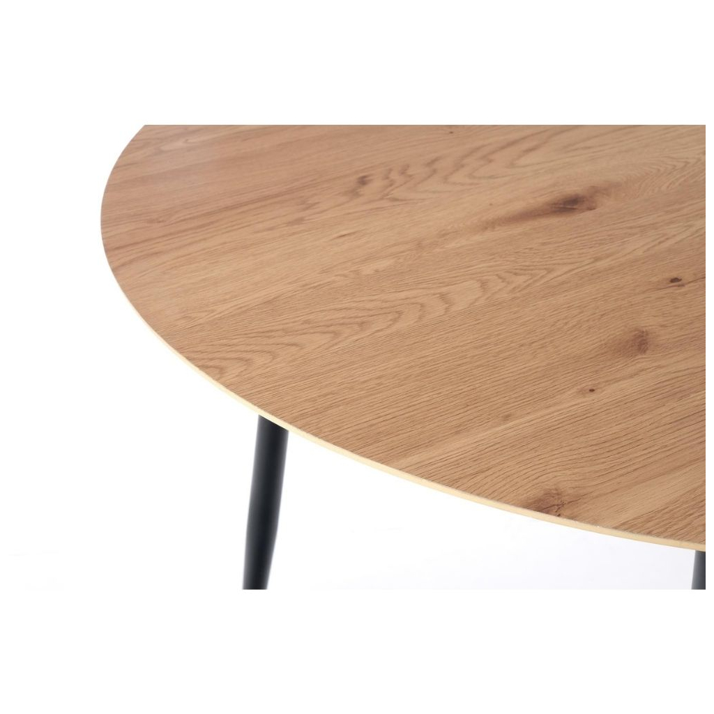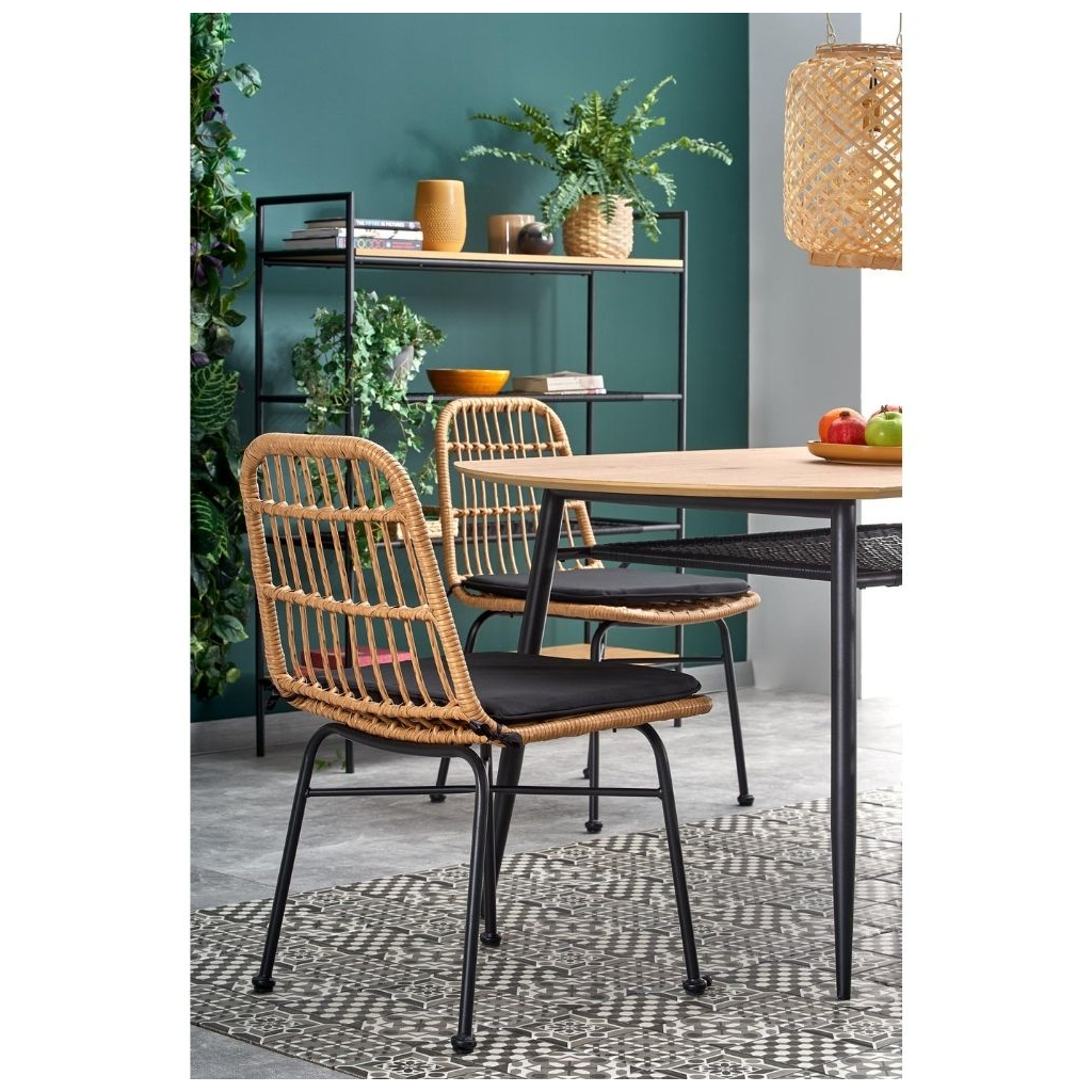Tento na pohled jednoduchý jídelní stůl nabízí dostatek prostoru pro usazení 4 osob a současně praktickou odkládací polici z umělého ratanu pod jídelní deskou. Stůl je vyroben z dýhované MDF desky v dekoru zlatý dub v kombinaci s ocelovými nožkami v černé barvě.