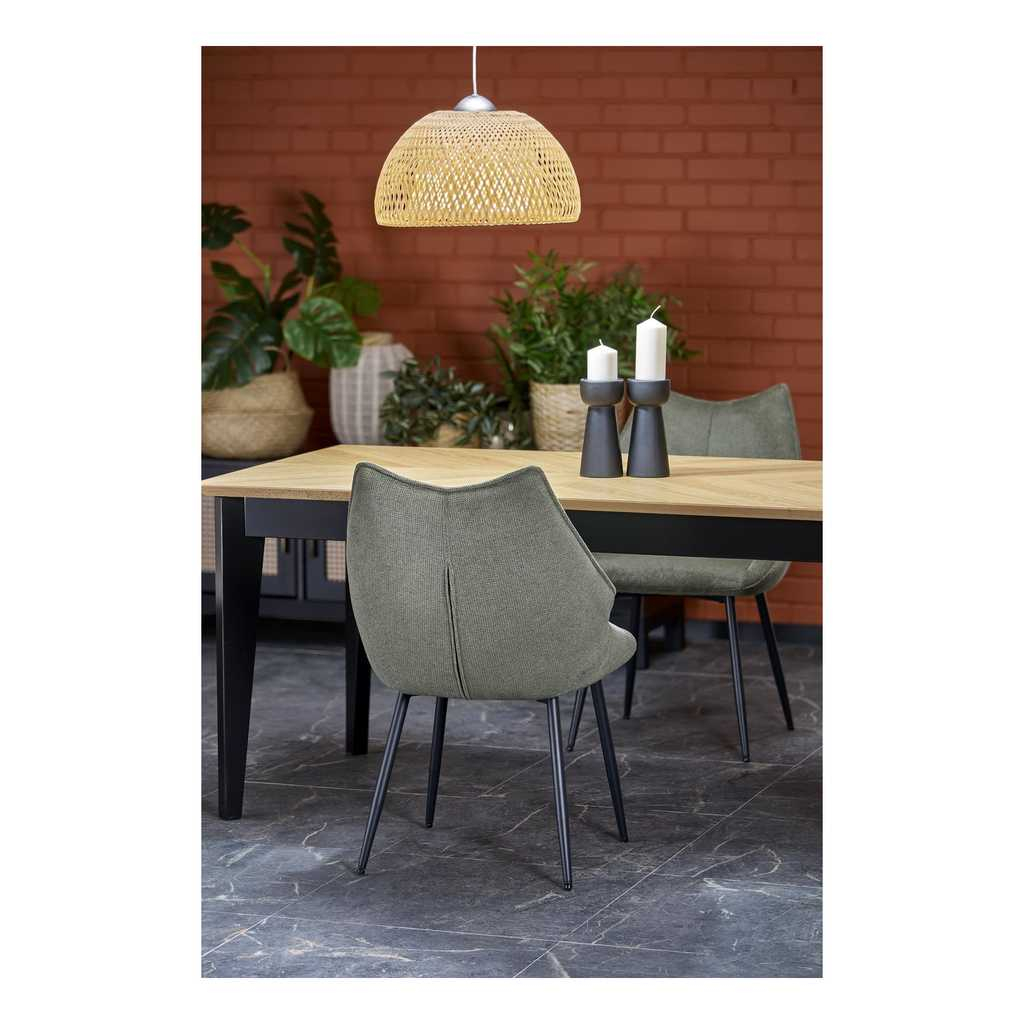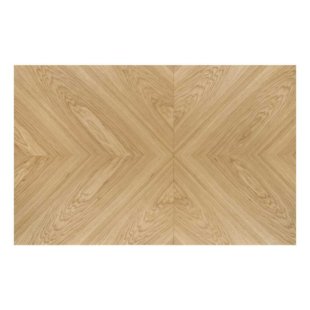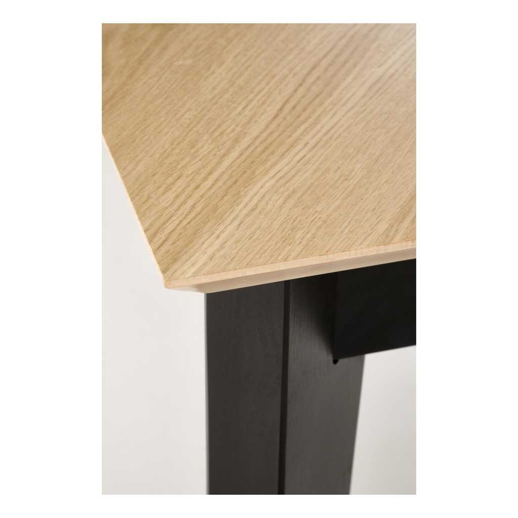 Obdélníková deska stolu je vyrobena z dřevotřísky, která je pokrytá přírodní dubovou dýhou, což mu dodává autentický vzhled dřeva, a přitom zajišťuje dlouhou životnost a snadnou údržbu. Povrch dýhy má jemnou strukturu, která dodává stolu příjemný a teplý vzhled, jenž přináší do interiéru pocit pohody.