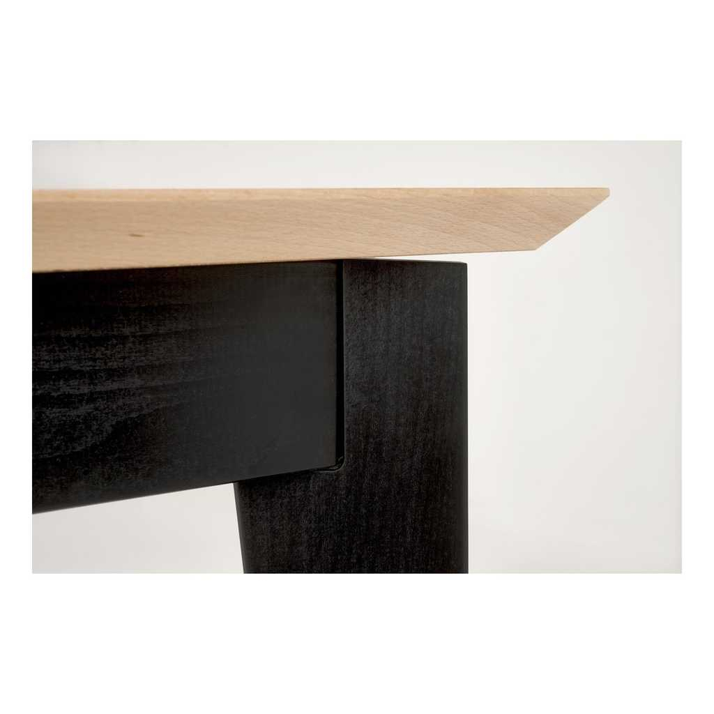 Nohy stolu jsou vyrobené z masivního bukového dřeva. To zaručuje pevnost a stabilitu celé konstrukce. Bukové dřevo je známé svou tvrdostí a odolností, což dává stolu dlouhou životnost a interiéru propůjčuje pocit útulna.