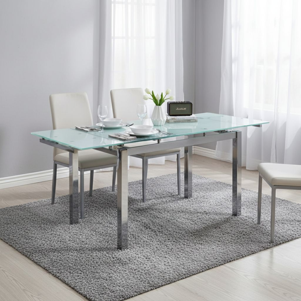 Neobvyklá horní deska z tvrzeného skla zaujme i náročnější návštěvy. Ozvláštněním stolu je kresba skrytá pod povrchem skleněné desky.