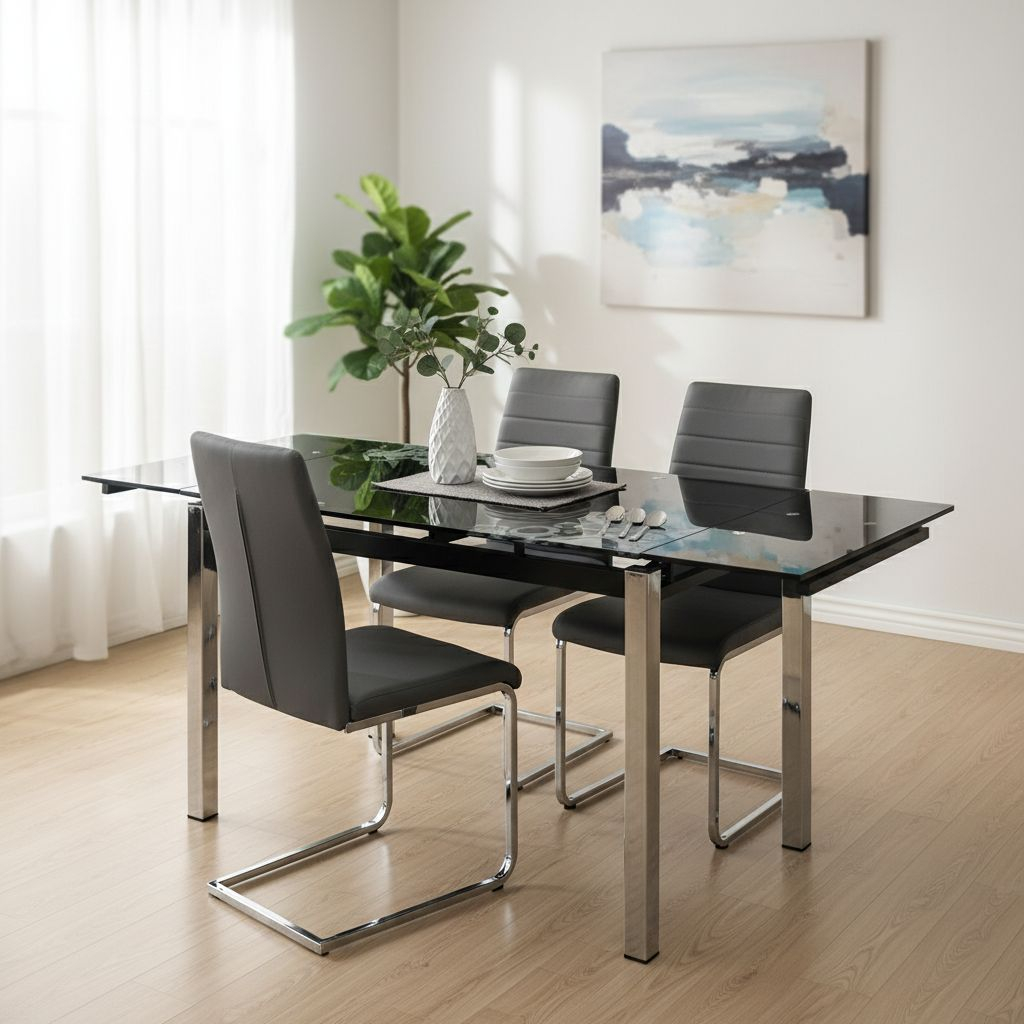 Neobvyklá horní deska z tvrzeného skla zaujme i náročnější návštěvy. Ozvláštněním stolu je kresba skrytá pod povrchem skleněné desky.