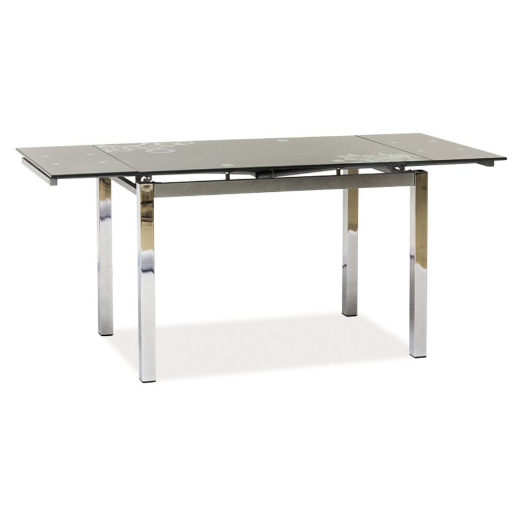 Neobvyklá horní deska z tvrzeného skla zaujme i náročnější návštěvy. Ozvláštněním stolu je kresba skrytá pod povrchem skleněné desky.