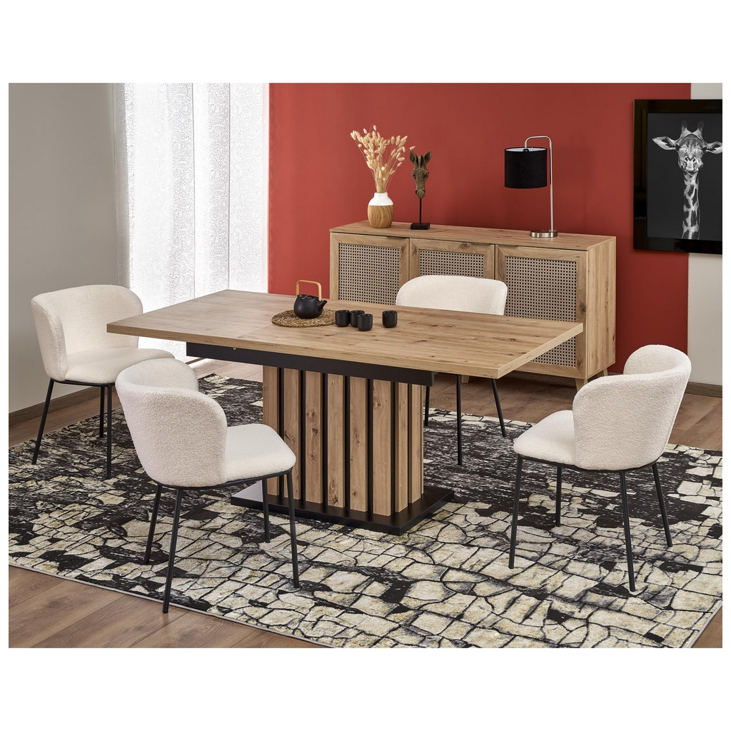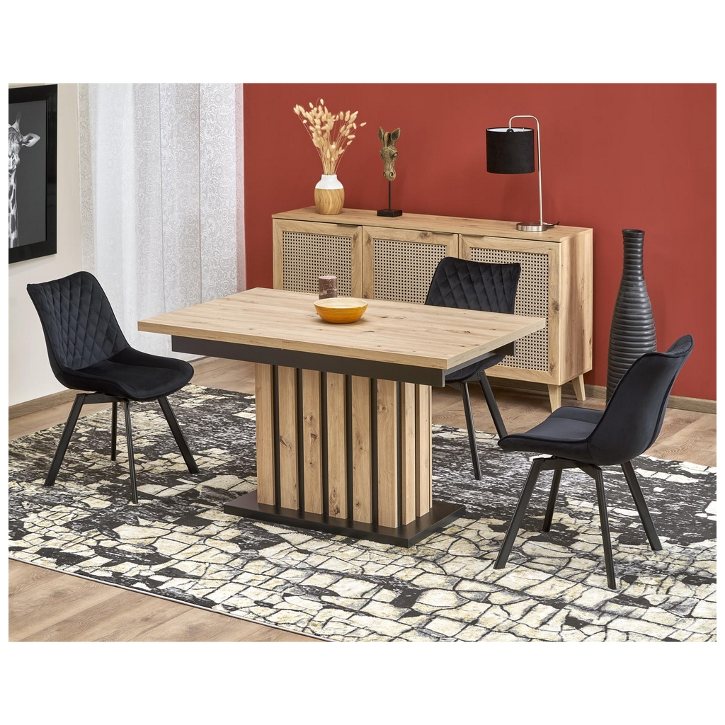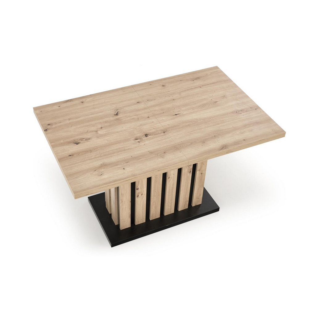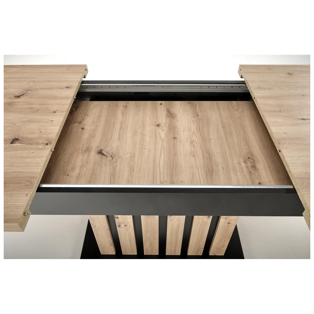Deska stolu má základní rozměry 130 × 80 cm, skrývá pod sebou ale úložný prostor, kde najdete přídavnou desku. Tou stůl během pár chvil prodloužíte o 50 cm.