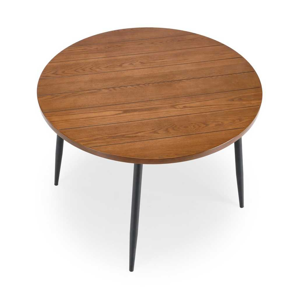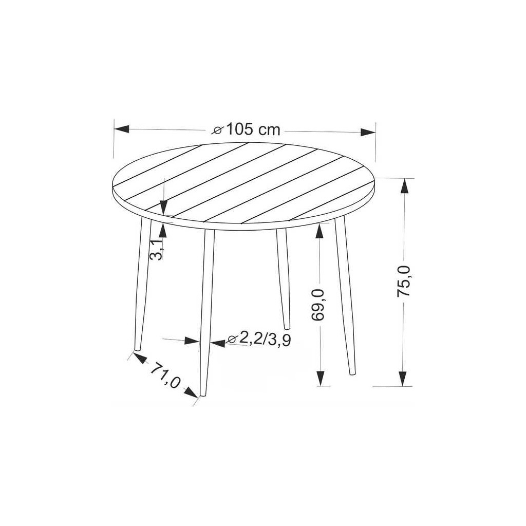 Jídelní stůl Laplace je elegantním a praktickým doplňkem do každé jídelny či kuchyně. Díky kruhovému tvaru a rozměrům 105 x 105 cm nabízí pohodlné místo ke stolování pro až čtyři osoby. Stůl je vyroben s důrazem na pevnost a stabilitu, což zajišťuje kombinace dřevěné horní desky a kovové podnože. Tento model není rozkládací, což podtrhuje jeho kompaktní a čistý design.
