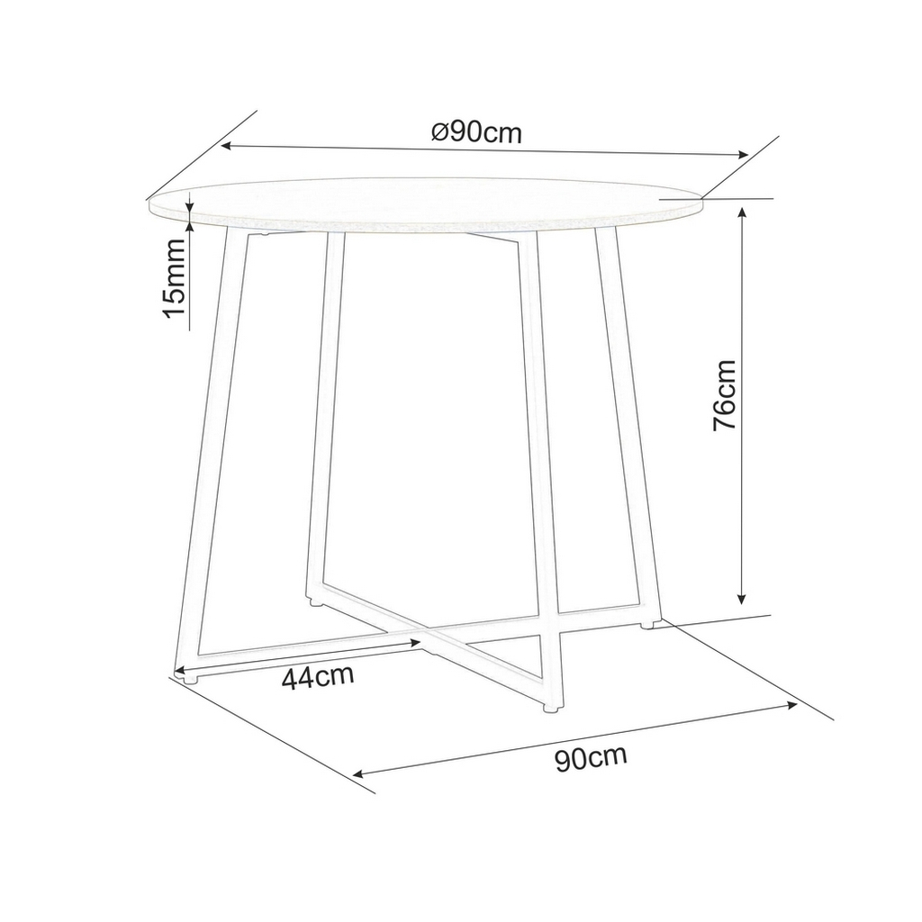 Deska stolu je vyrobená z laminované dřevotřísky a díky průměru 90 cm poskytuje dostatek prostoru pro podávání jídla. Stůl je zároveň kompaktní a snadno se vejde do menších prostorů. Předností je také jeho snadná údržba, kterou zvládnete pár tahy hadříkem.