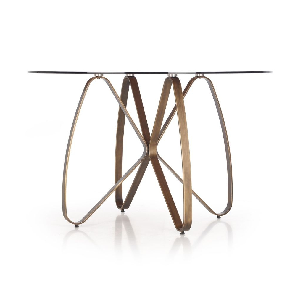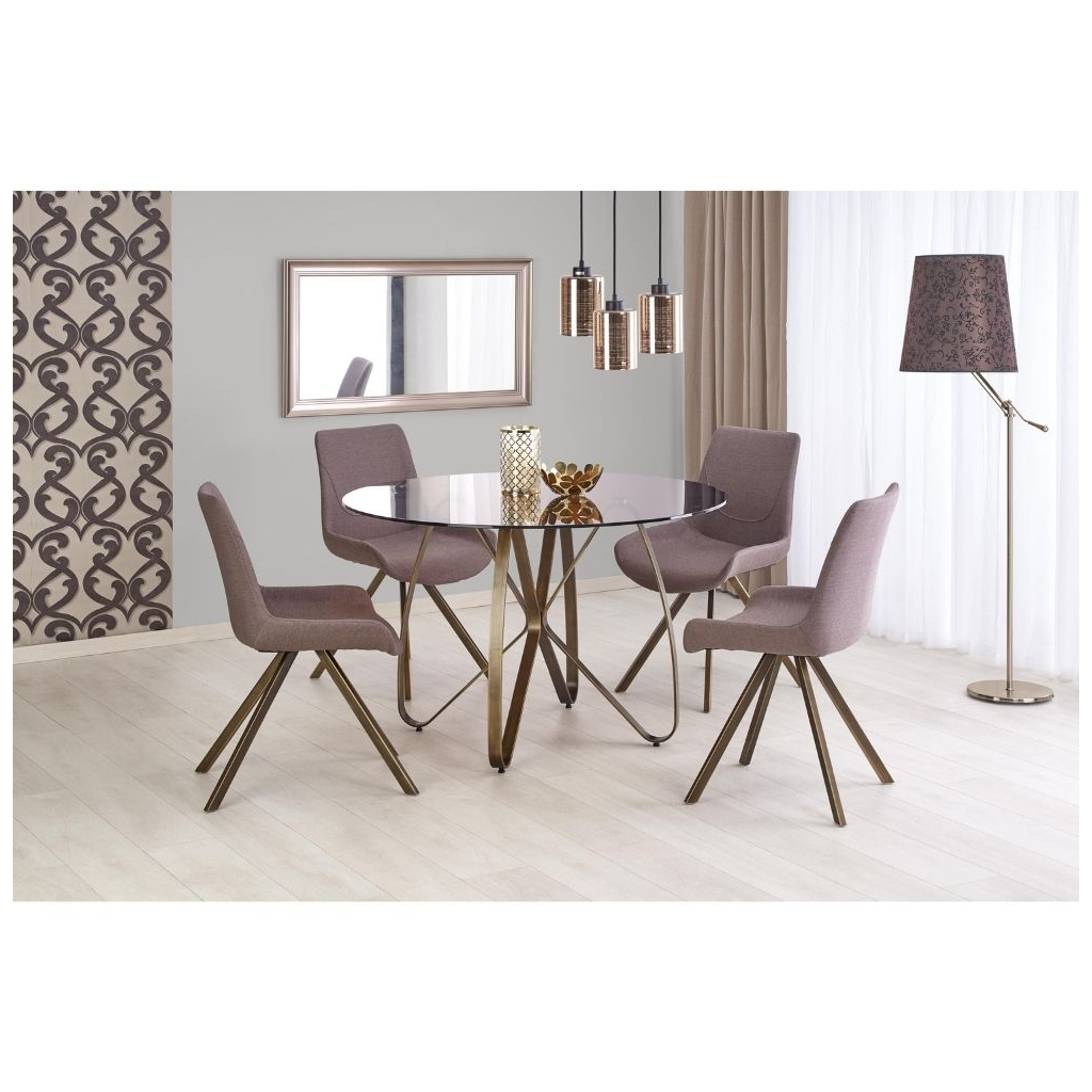 Deska stolu je vyrobena ze skla v barevném provedení hnědá, průhledná. Nohy stolu jsou řešeny originálním způsobem tak, aby byl stůl maximálně stabilní. Pevnost stolu určitě posílí provedení nožek z práškované oceli.