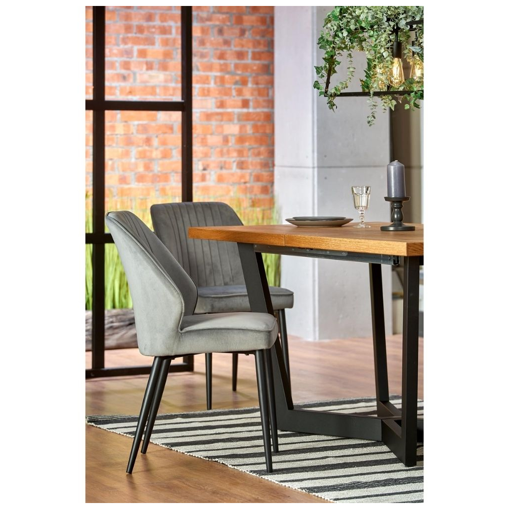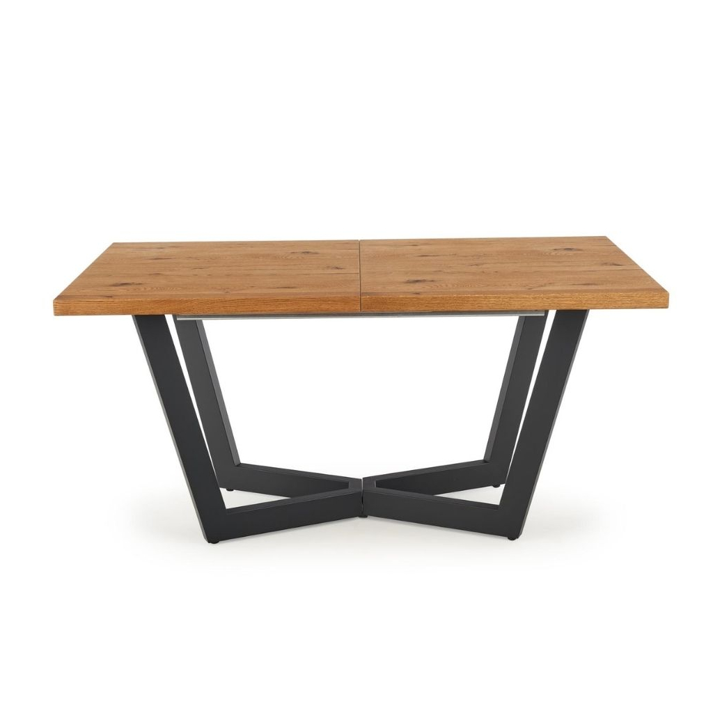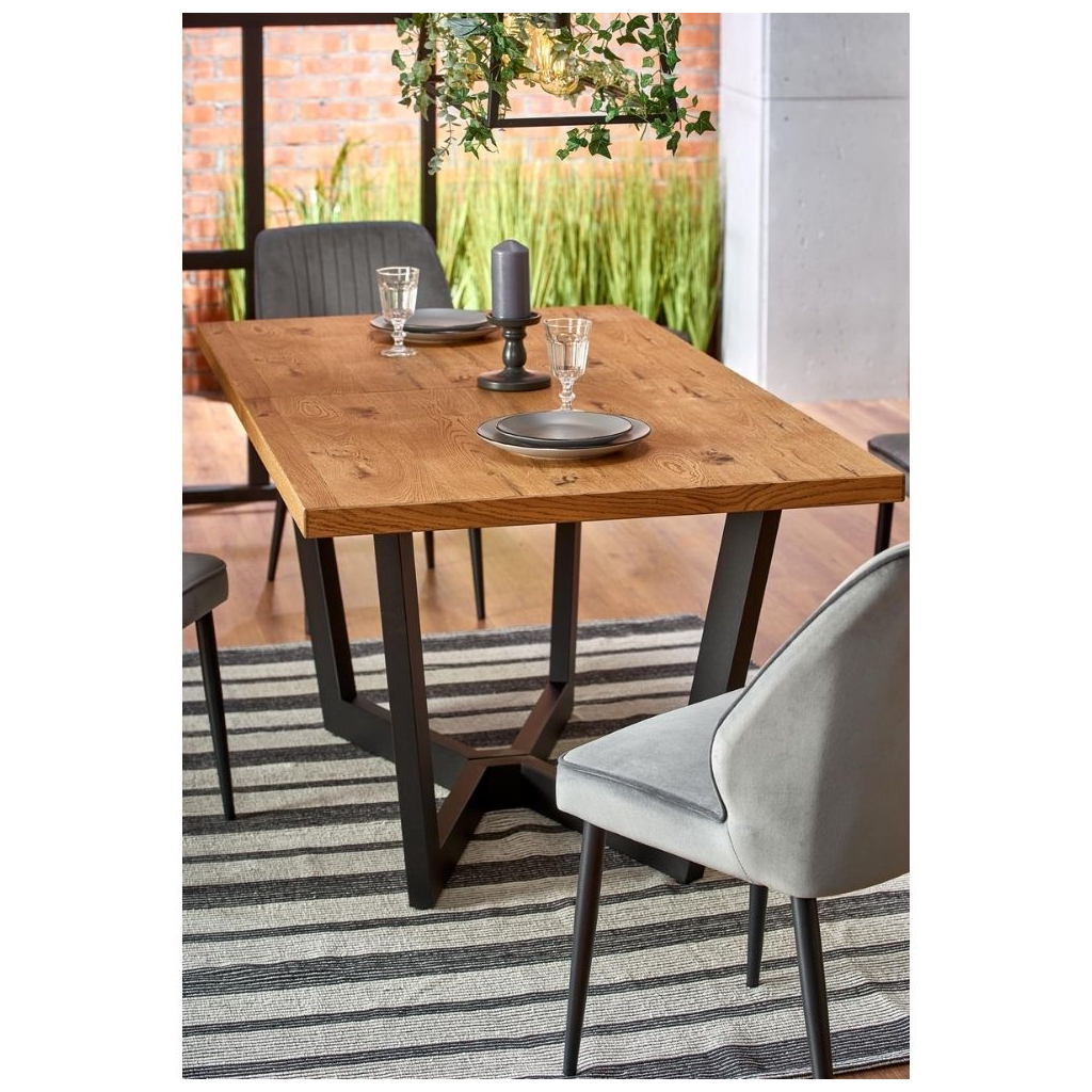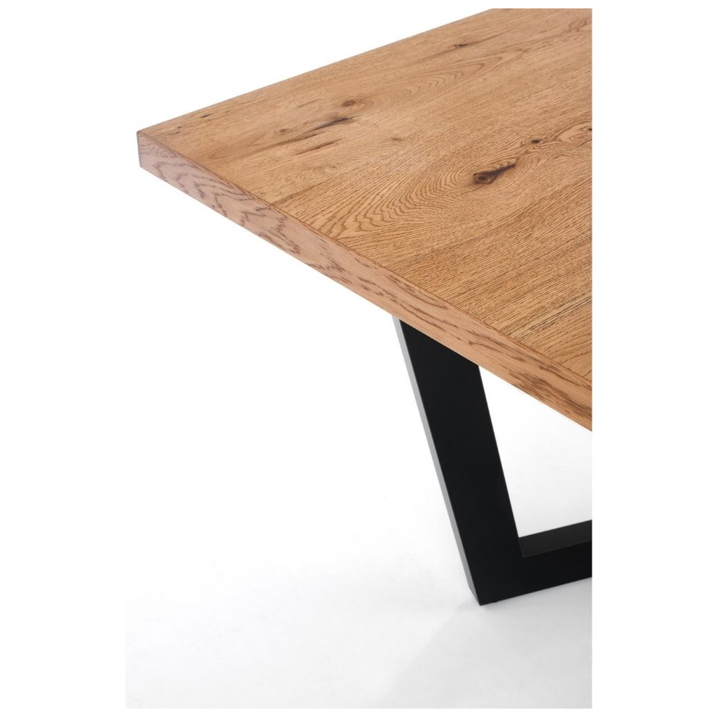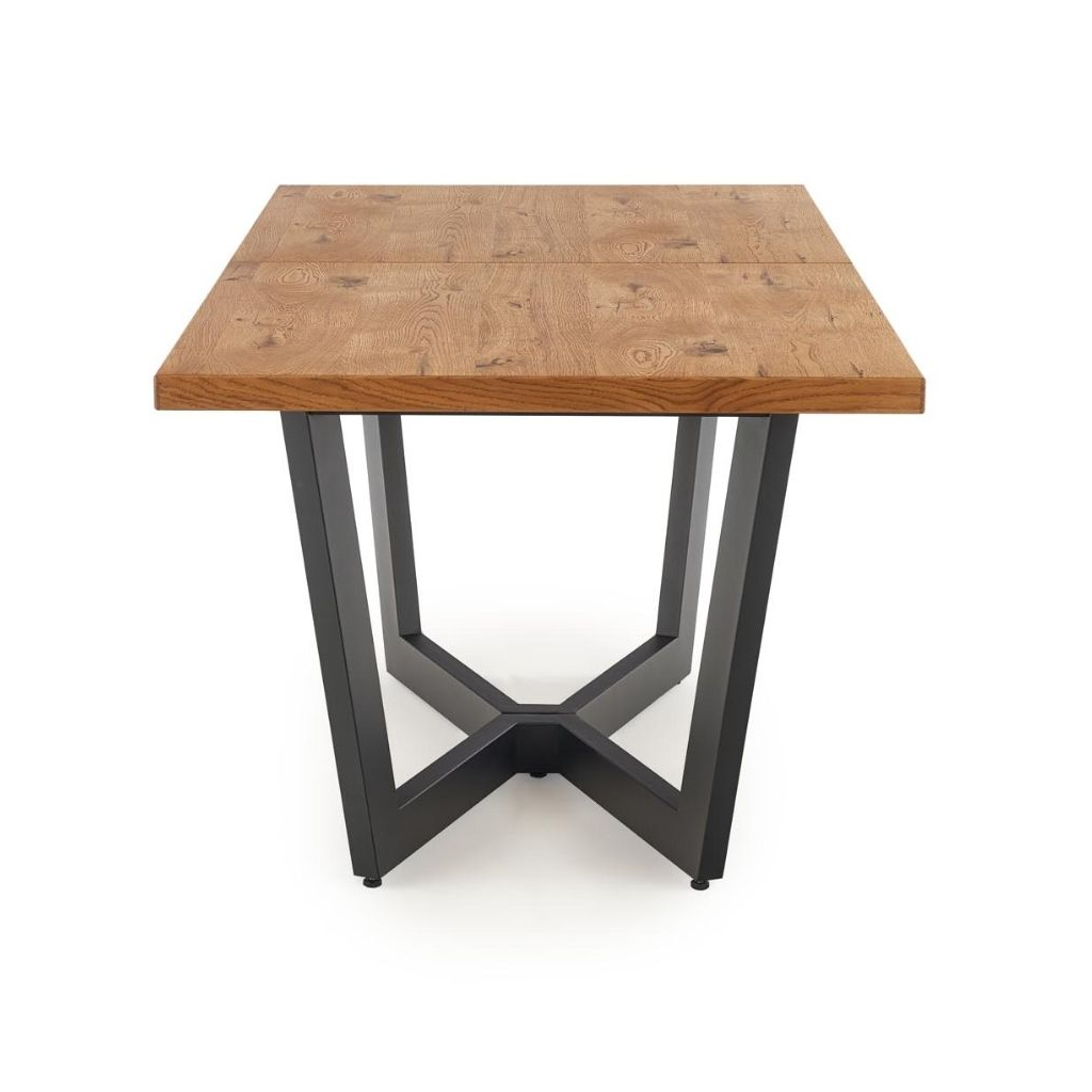 Deska stolu je vyrobena z MDF v kombinaci s masivním dřevem na okrajích v barevném provedení dub. Nohy stolu jsou konstruovány tak, aby nepřekážely při sezení a současně zajistily stolu maximální pevnost. Tu umocňuje jejich provedení z práškované oceli v černé barvě.