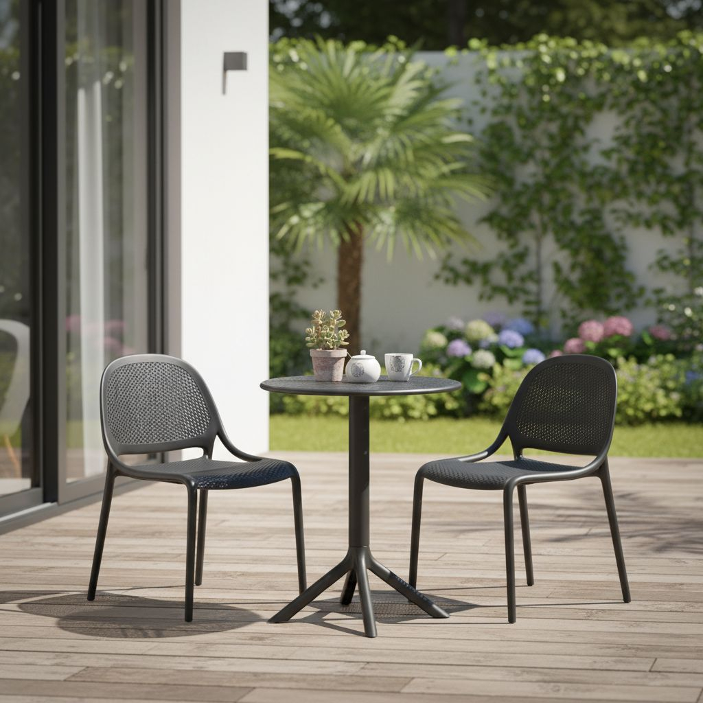 Kulatou horní desku i podnož tvoří pevný plast. Tento materiál je známý svou dlouhou životností, odolností a v neposlední řadě také velmi snadnou údržbou. Stačí pár tahů vlhkým hadříkem a stůl je opět jako ze škatulky. Hodí se i pro venkovní použití.